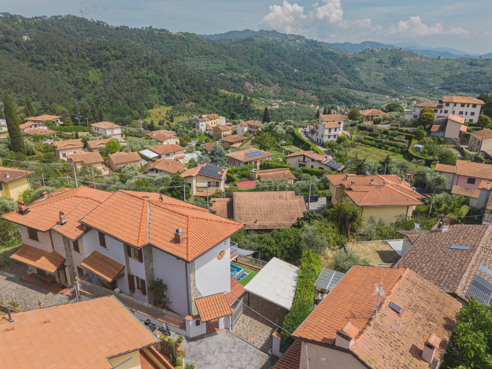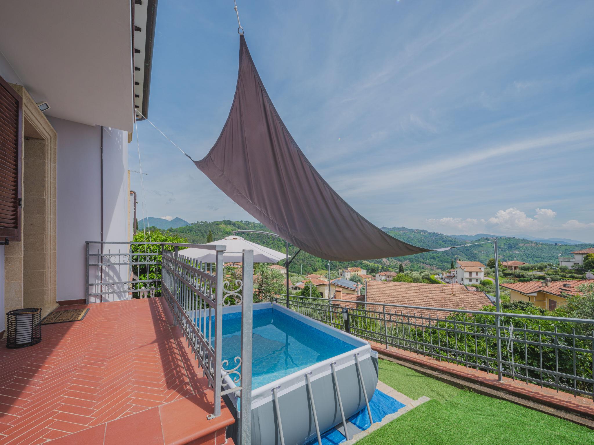 Bargecchia 10 km from Viareggio: Large, very cosy, very comfortable 2-family house semi-detached, renovated. In a central, sunny position in the residential district, excellent location: right in the centre but still quiet, 10 km from the sea, 10 km from the beach. Private: terraced garden (fenced), natural garden, swimming pool (above ground) angular (3 x 2 m, depth 80 cm, seasonal availability: 01.May. - 30.Sep.) with internal staircase. Garden furniture, barbecue, pool maintenance by the owner/gardener. Heating available only from 01.Nov. - 15.Apr.. Roofed, parking (limited number of spaces) on the premises. Grocery 500 m, supermarket 4 km, restaurant 500 m, bar 100 m, bakery 500 m, bus stop 150 m, railway station "Viareggio" 10 km, sandy beach "Viareggio" 10 km, public bathing area 10 km, lake Massaciuccoli 9 km. Golf course (18 hole) 16 km, surf school 10 km, tennis 10 km. Nearby attractions: Firenze 100 km, Lucca 43 km, Pisa 30 km, Pietrasanta 14 km, Forte dei Marmi 25 km, Cinque Terre 100 km. Hiking paths: Sentieri Alpi Apuane 15 km. Please note: car recommended. Suitable for families, baby equipment on request (extra). Loading and unloading of baggage is possible at the holiday house. Part of the house is closed and unoccupied.