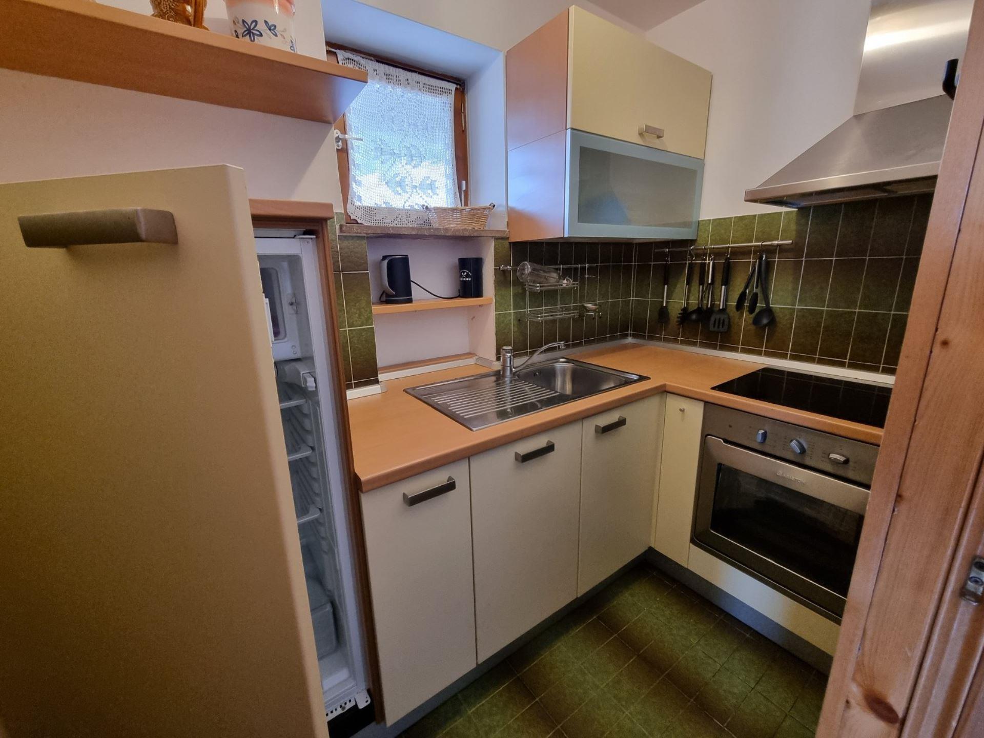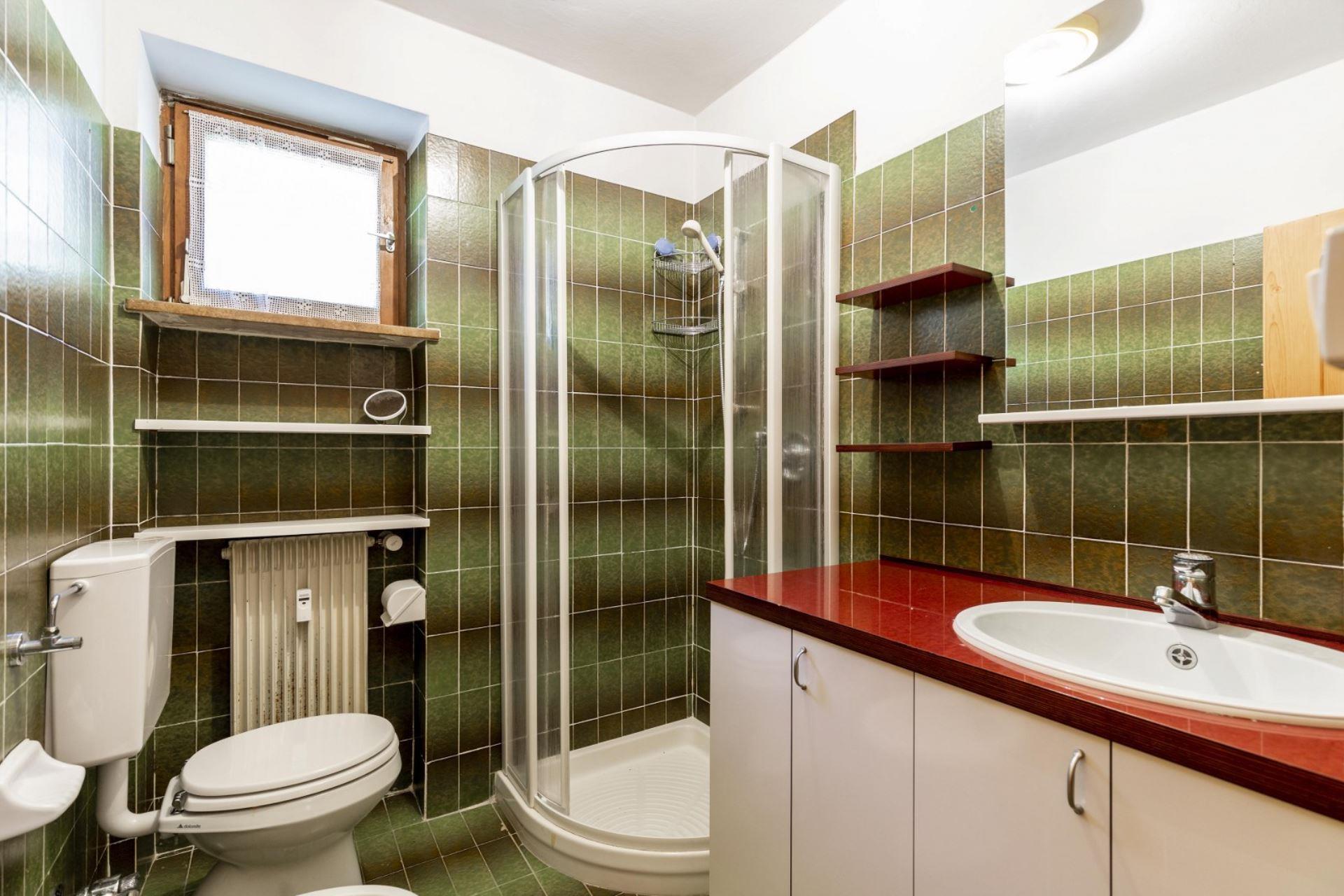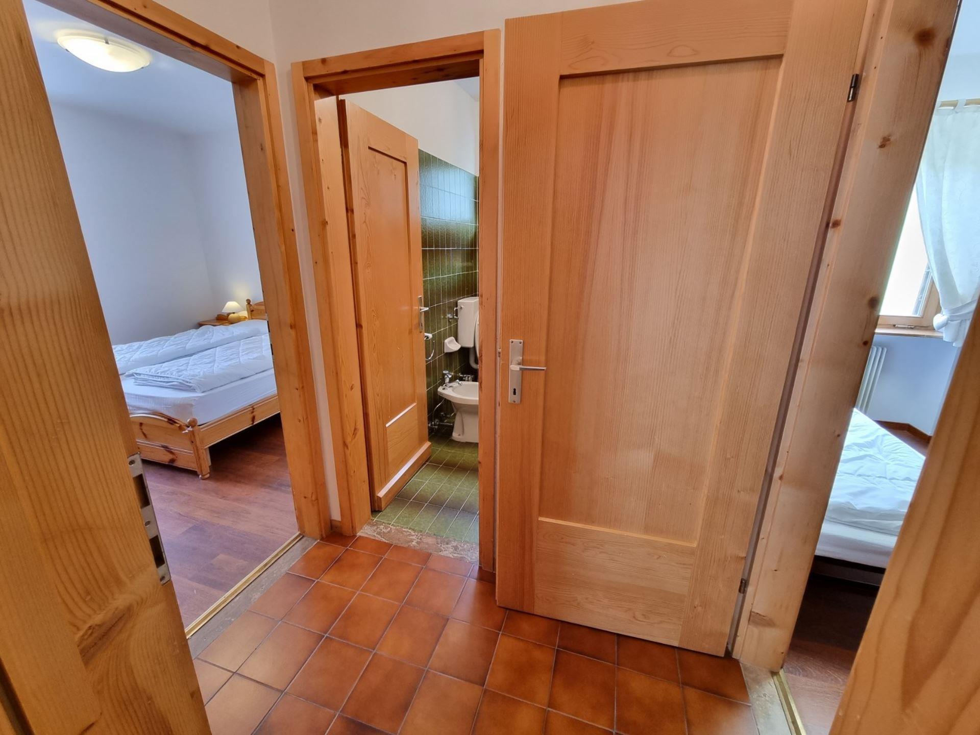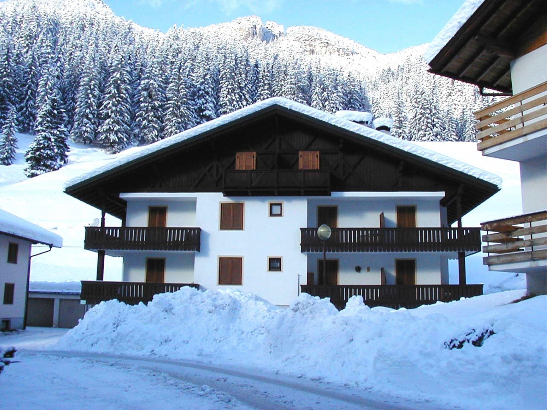 Fontanazzo is located near the Avisio stream and childrens playground. The Baita MR house is located on the first floor and is composed of: entrance, living room with kitchenette, double bedroom, bedroom with sofa bed for 2 people, bathroom with window and shower and washing machine. Large terrace. Parking space in the garage, shared cellar/ski storage. Located in Fontanazzo close to Campitello di Fassa near the house you find a bar/pizzeria "Lo Scopiattolo"