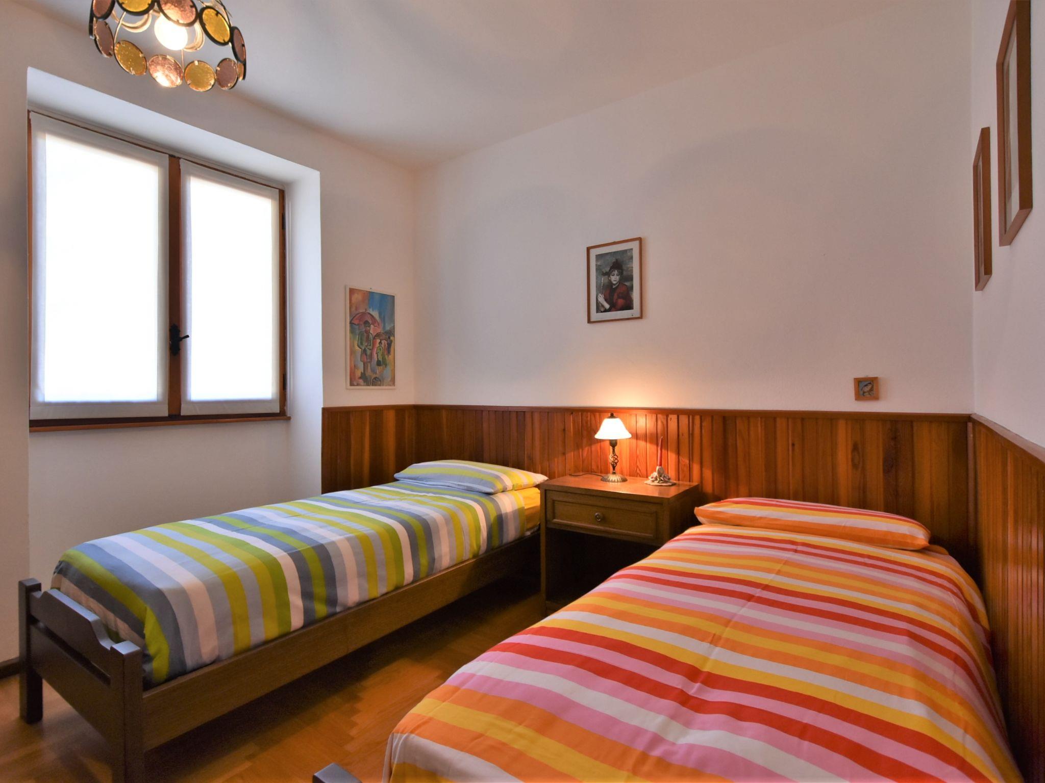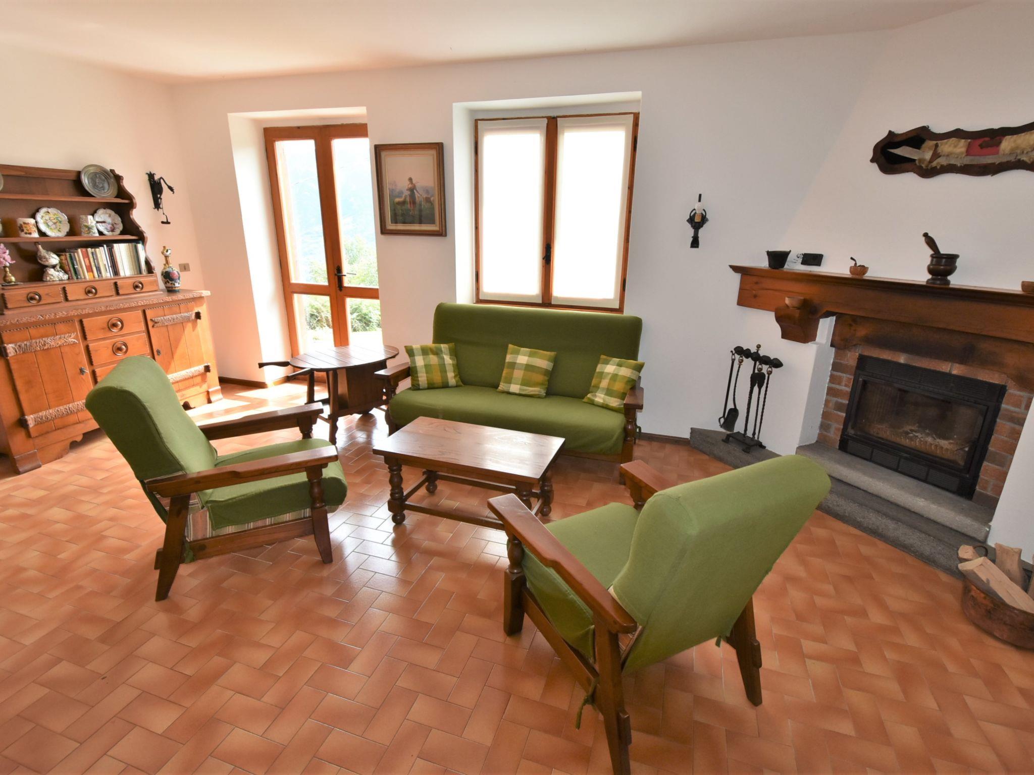 4-room chalet 100 m2, on the ground floor. Spacious and bright, practical and comfortable furnishings: large living/dining room with open-hearth fireplace and TV. Exit to the garden. 1 room with 2 beds. 1 room with 2 beds. 1 double bedroom. Kitchen (5 hot plates, oven, toaster, kettle, electric coffee machine, Capsules for coffee machine (Nespresso) free) with small dining table. Shower/bidet/WC. Heating. Parquet floors. Barbecue, deck chairs (6). Beautiful panoramic view of the mountains and the valley. Facilities: washing machine, hair dryer. Internet (WiFi, free). Please note: non-smoking house. IT014041C2YZYYR8ZM