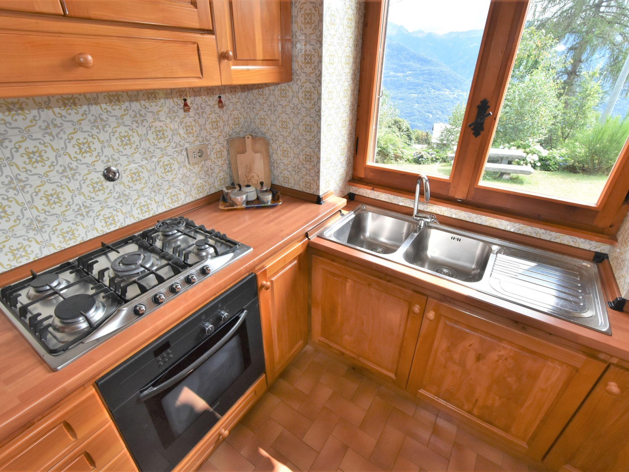 Simple, comfortable chalet "Chalet Elda", 1'030 m a.s.l., detached. In the hamlet Poira 5 km from the centre of Mello, 13 km from the centre of Morbegno, in a secluded, quiet, sunny position, along the wooded area, south facing position. Private: large, beautiful garden 2'000 m2 (fenced). Terrace, garden furniture, barbecue. In the house: storage room for bicycles, sun terrace, storage room for skis. Motor access (mountain road). In Winter: please take snow chains. Roofed, parking (for 2 cars, in winter) at the house, public parking 50 m on the road. Parking space or garage only for small to medium-sized cars. Dimension: height 200 cm width 220 cm. Grocery 5 km, supermarket 5 km, restaurant 5 km. Nearby attractions: Morbegno 14 km, Val di Mello 20 km, Fly Emotion (Zipline) 24 km, Ponte Tibetano Ponte nel Cielo 28 km, Sondrio 35 km, Train Bernina Express: Tirano-St Moritz 60 km. Well-known lakes can easily be reached: Lago di Como 28 km. Hiking paths: Bagni di Masino, Lago San Martino, Lago di Scermendone, Monte Belinghera, Sentiero Valtellina. Please note: car recommended. Animals in the neighbourhood.