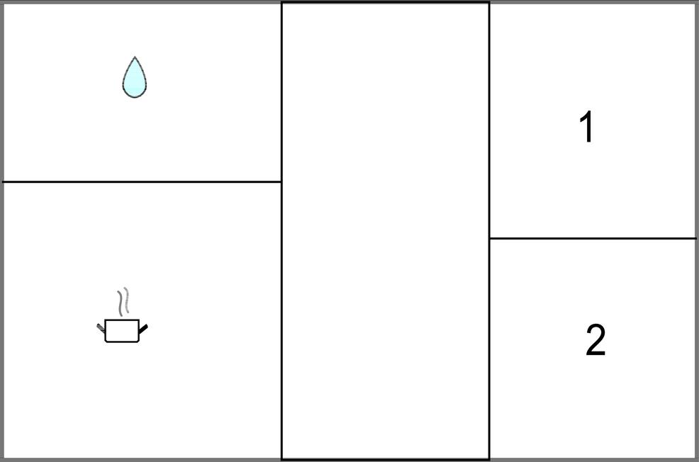 Badeværelse (nr. 1) - WC. Varmt og koldt vand. Bruser
