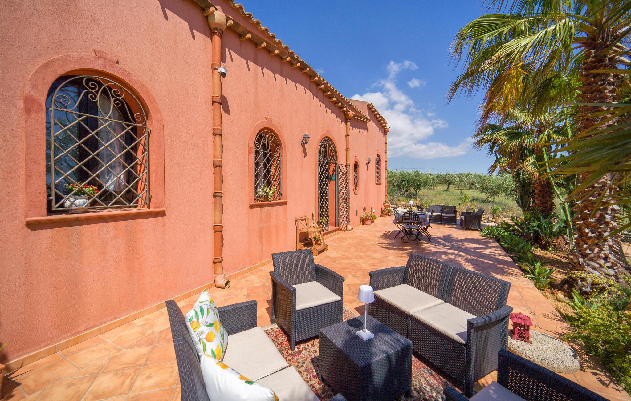 Beliggende helt afsides i det sicilianske landskab, kun få minutter fra byen Menfi, vil I nyde fred, plads og privatliv. Fra det øjeblik I træder ind, vil I mærke den særlige charme ved denne elegante villa, der blander middelhavslivsglæde med moderne komfort. Uanset om I slapper af med en bog, tilbringer hyggelige timer i den indbydende opholdsstue eller tilbereder italienske delikatesser i det fuldt udstyrede køkken - alle vil finde deres eget personlige yndlingssted her.