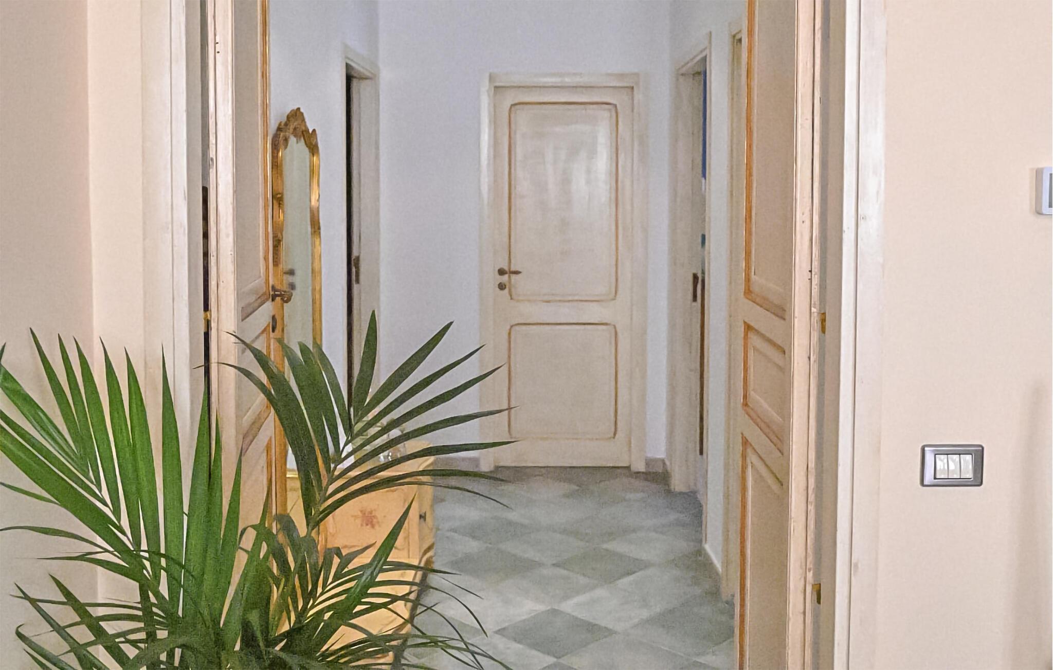 Oplev en afslappende ferie og nyd den autentiske stemning i en lille siciliansk by. Denne rummelige ferielejlighed tilbyder de ideelle rammer for et afslappende ophold med familie eller venner. Træd ind i den velholdte lejlighed med lyse værelser, smagfuld indretning og omhyggeligt udvalgte detaljer. Den harmoniske kombination af moderne og klassiske elementer skaber en behagelig atmosfære. Opholdsstuen inviterer jer til at slappe af med komfortable sofaer, et tv og stilfulde træmøbler. Nyd jeres måltider i den elegante spisestue med lysekrone og brug det smukke køkken til at tilberede kulinariske kreationer.