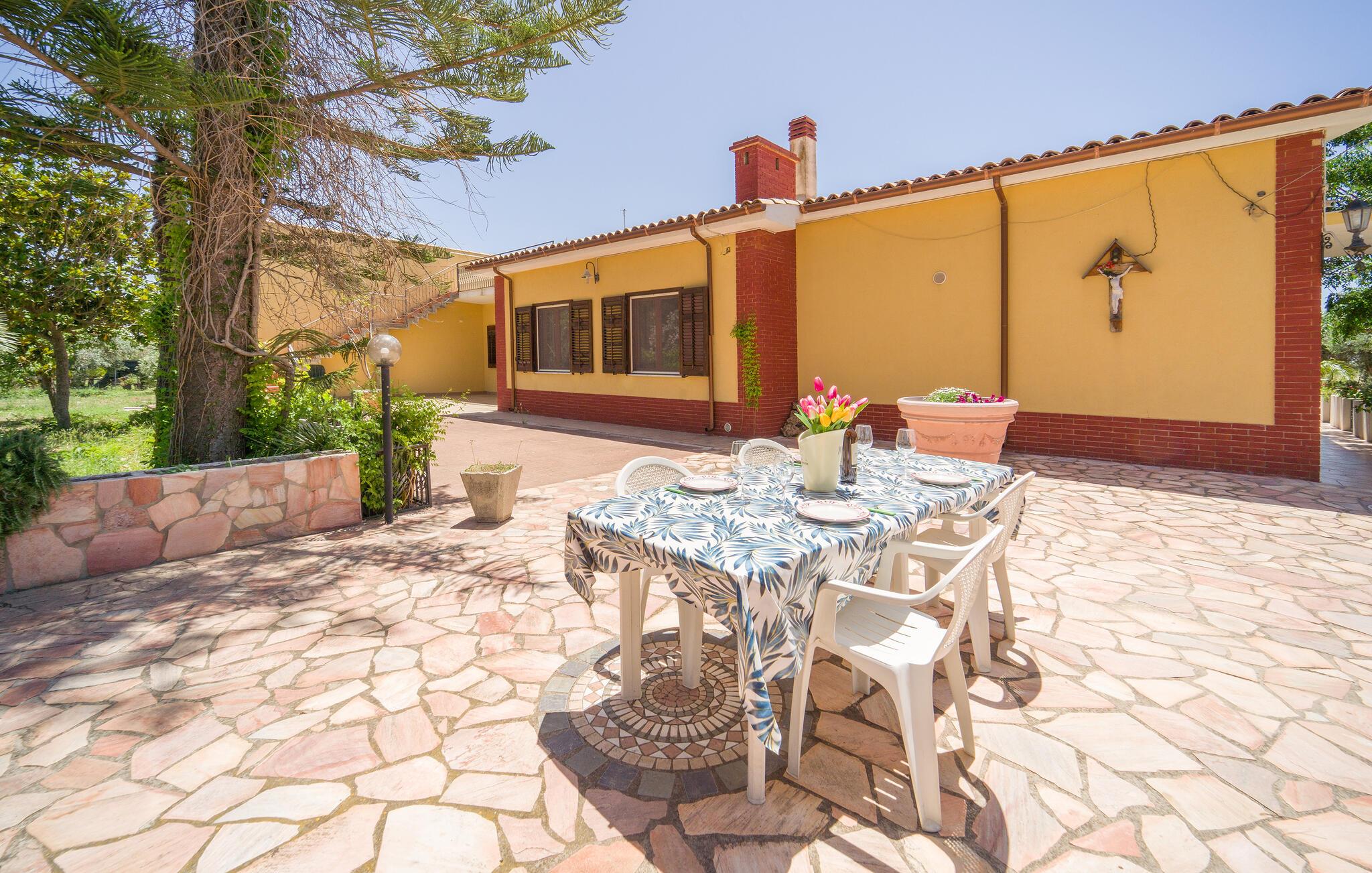 Cirka 300 m fra boligen er et af de vigtigste vingårde i Europa, som du kan arrangere ture til. Placeringen er ideel for dem, der ønsker at udforske denne del af kysten: Byen Sciacca, kendt for sin keramiske produktion og termiske bade, ligger ca. 15-18 km væk. Det arkæologiske sted Selinunte venter på dig i samme afstand.