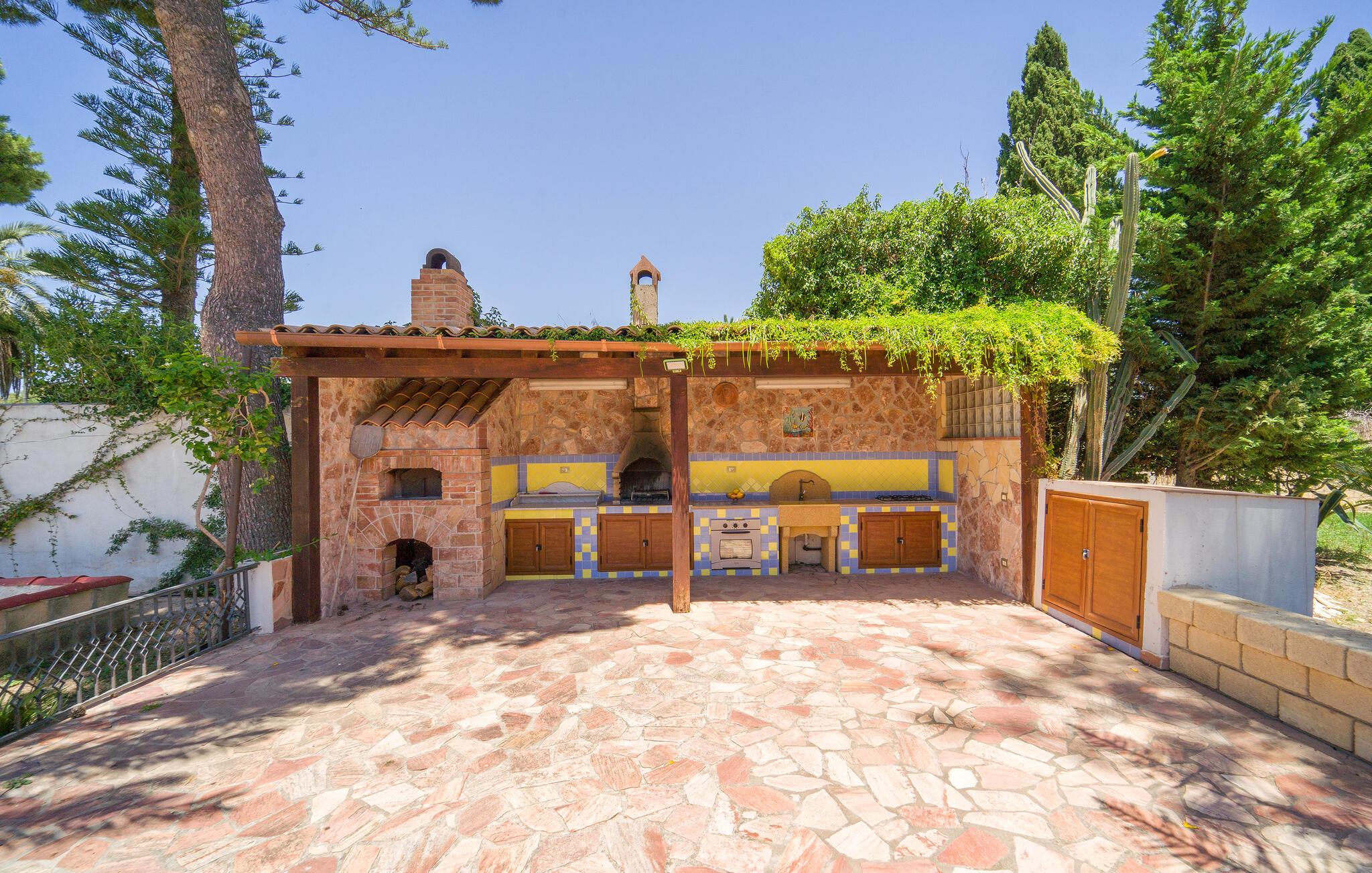 Udendørs finder I også et muret køkken, grill og en veludstyret terrasse til udendørs spisning.