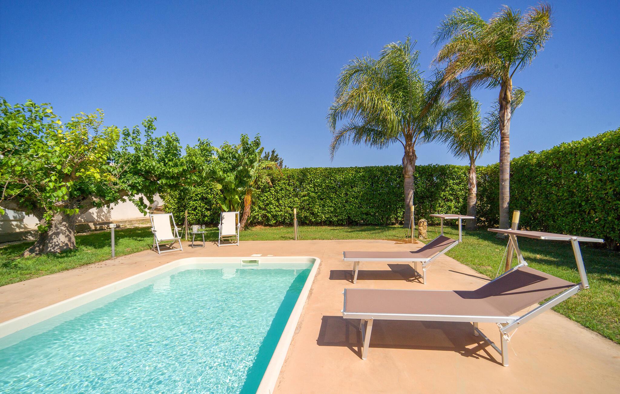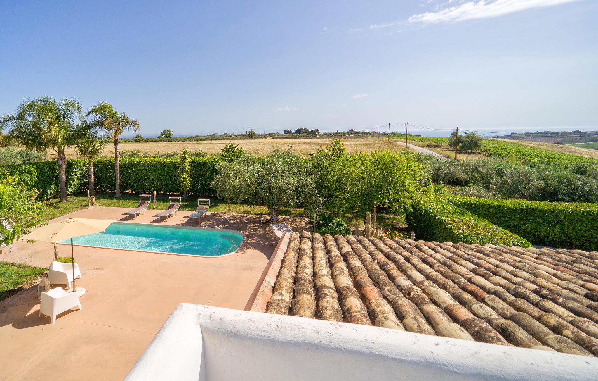 Dejligt hus med privat pool på landet, kun få km fra Menfi, et område kendt for fremragende gastronomi og vin af høj kvalitet. Ejendommen strækker sig over en enkel etage med stort udendørsområde. Verandaen er indrettet til, at I kan slappe af på varme sommerdage og nyde jeres måltider i det fri. Et praktisk udendørskøkken står til jeres rådighed. De dejlige sandstrande af Menfi er også velegnet til familier med små børn (Lido Fiori og Porto Palo). Der er 10 km til kurbadene i Montevago og 20 km til dem i Sciacca. 90 km til Agrigento med den berømte templernes dal. 90 km til Trapani (lufthavn). 120 km til Palermo. Mod reservation og betaling kan husejeren arrangere middage og temaaftener.
