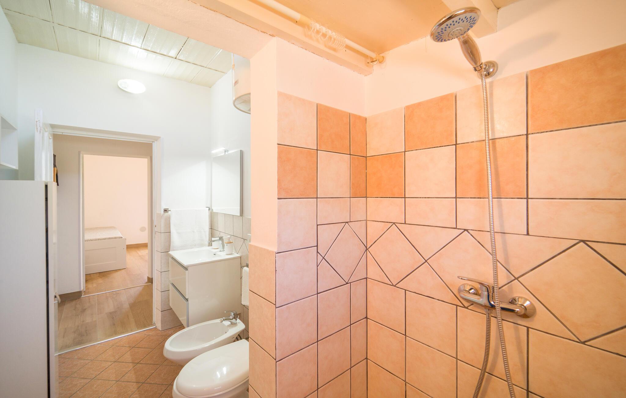 Badeværelse (nr. 1) - WC. Varmt og koldt vand. Bruser