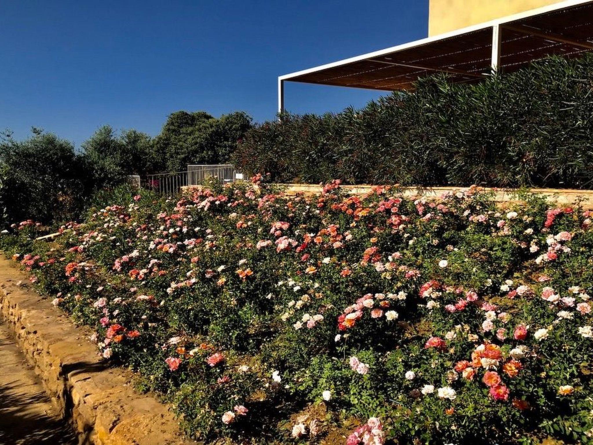 La Casa delle Rose is set in a vast flower garden, surrounded by vineyards, olive groves, orchards and other dense vegetation in a mutual contamination of Mediterranean colours, smells and flavours. It has its own private outdoor area, cosy and immersed in greenery. Two centuries-old carob trees mark the garden, from which there is a breathtaking view over the valley and the sea. The atmosphere is typically Mediterranean. A stay at the Casa delle Rose is a genuine Sicilian experience, where rurality and tradition guarantee a familiar and authentic welcome and hospitality. The possibility of spending pleasant moments of relaxation, enjoying private outdoor spaces, enriches this feeling of wellbeing, ease and intimacy. Outside, in their small gardens and verandas covered with reeds and bordered by palms, bougainvilleas, rose bushes and jasmine, guests can indulge in their moments of food and also enjoy the cool evenings that Sicily's temperate evening climate gives us. In addition to the spaces that specifically pertain to the House of Roses, guests can enjoy the Belvedere over the Menfi countryside that merges to the south with the sea line, as well as the vegetable garden of Case Graffeo, located in an area bordered by a colourful hedge of prickly pears. The vegetables and greens, strictly organic, that the Graffeo family produces in this garden can be harvested directly by guests, who can then use them to prepare delicious dishes of the local culinary tradition.La Casa delle Rose nel Borgo di Case Graffeo is an ideal place to spend a pleasant naturalistic and cultural holiday in western Sicily. From Menfi, by car and in some cases also by bicycle, in absolute relaxation and taking between 15 and 60 minutes, crossing gentle hills and admiring wonderful natural landscapes, it is possible to reach and visit numerous sites of historical and archaeological interest; to name but a few the Archaeological Park of Selinunte and Cave di Cusa - the most extensive evidence of Greek domination in Sicily -, the Greek Temple and Theatre of Segesta, the Oriented Nature Reserves of the Belice River and the Zingaro, the Scala dei Turchi the Greek Temple of Concordia and with it all the others that enrich and adorn the famous and marvellous Valley of the Temples in Agrigento - included since 1997 in the list of World Heritage Sites drawn up by UNESCO - and then Mazara del Vallo with the Museum that preserves its Dancing Satyr - an emblem of Mediterranean beauty, an example of the submerged cultural heritage recovered in the sea of Sicily - and the Salt Pans of Marsala, Erice and Trapani.