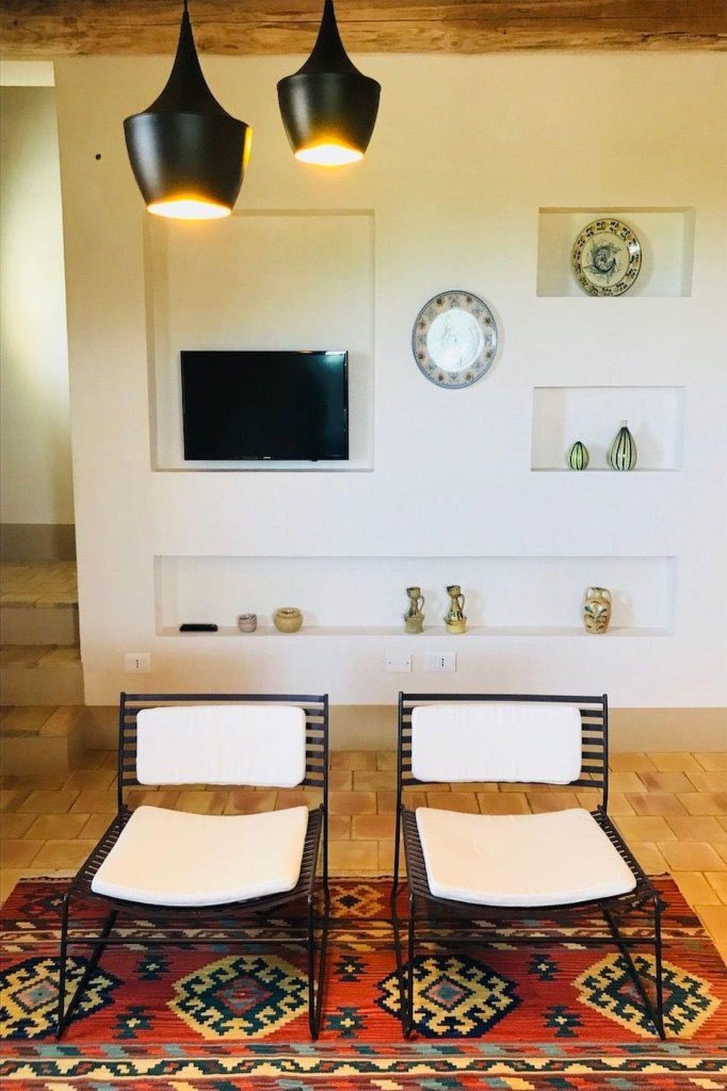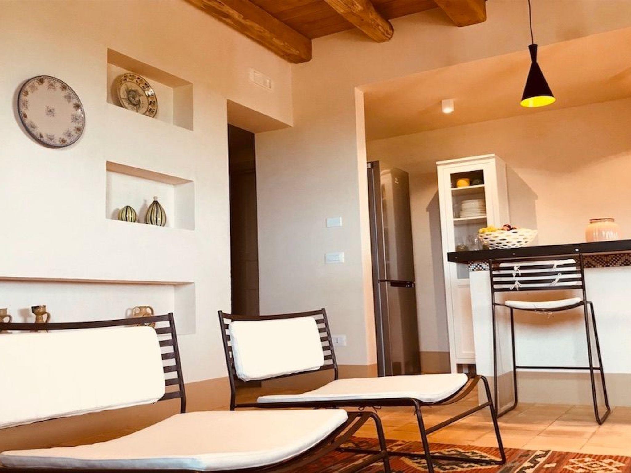 Casa delle Rose, is accessible through a large veranda covered with reeds, bordered on one side by an ancient stone wall, evidence of the pre-existing farmhouse from the second half of the 19th century, and on the other by a colourful rose garden from which we took our inspiration for the name of this house. It is arranged on two floors. On the ground floor you are welcomed into the spacious and bright living area, from which, in addition to the lush surrounding countryside, you can glimpse the colours of a centuries-old Bougainvillea that paints the horizon as it flows into the sea. A strongly distinctive element of the house, as well as of this area, is the ancient, exposed stone wall, also a testimony to the old farmhouse mentioned above, which borders one side of it. The living room is equipped with all comforts; the furnishings combine tradition, typicality and rurality with simplicity, sobriety and essentiality. It is also distinguished by the presence of a large and efficient cooking corner in which the predominant element, as well as a link with the rural tradition of the area, is a hob and work surface made of ceramic tiles produced by a Master Ceramist from Sciacca; these tiles feature the colours, designs, geometries and inserts of 18th-century Sciacca ceramic production. Adjacent to the living area, our guests can make use of a small pantry and a separate area enclosing the laundry room. Outside the living room, in the reed-covered veranda, guests can indulge in their meals and also enjoy the cool evenings that Sicily's temperate evening climate gives us. The ground floor is completed by one of the two bedrooms with which the house is equipped. This first bedroom overlooks, through a large and bright French window, the veranda bordered by the rose garden and a hedge of oleanders. This room is also characterised by the presence of the oft-mentioned old stone wall, which in this case is enclosed in a masonry frame forming a picture above the headboard of the double bed. It has at its disposal an independent room service that can also be used by the disabled. The furniture includes the double bed, walk-in wardrobe and chest of drawers. The large French window can be closed by curtains made of completely blackout material to allow maximum comfort for guests who prefer to rest in the dark. From the living area, the Upper Floor is reached by means of an internal staircase with a single ramp, typical of rural dwellings in the area, which provides access to the second bedroom of the House. This one, to the south, enjoys the view and the landscape of the valley and the sea through a large and bright window. A French window, on the other hand, on the north side of the room, opens onto a reed-covered veranda from which, reclining on simple, linear but comfortable armchairs, it is possible to enjoy the cool northern breeze and the geometries designed by the luxuriant rows of vines that border the House area. There is also an independent room service. The furnishings include two single beds that can be converted into a double bed, a walk-in wardrobe and a chest of drawers. Special curtains on the window frames, made of completely blackout material, provide maximum comfort for guests who prefer to rest in the dark. The House, also on the Upper Floor, also has a very bright veranda, covered with beams and chestnut planking from Etna, which faces south through a large window. The latter, delimiting the wide and deep panorama that can be seen, effectively becomes the frame of the natural picture it creates, in which the 'painting' is represented by the countryside, the valley and the sea that closes the background. The house is fully air-conditioned and Wi-Fi is always active and accessible in all its internal and external areas.