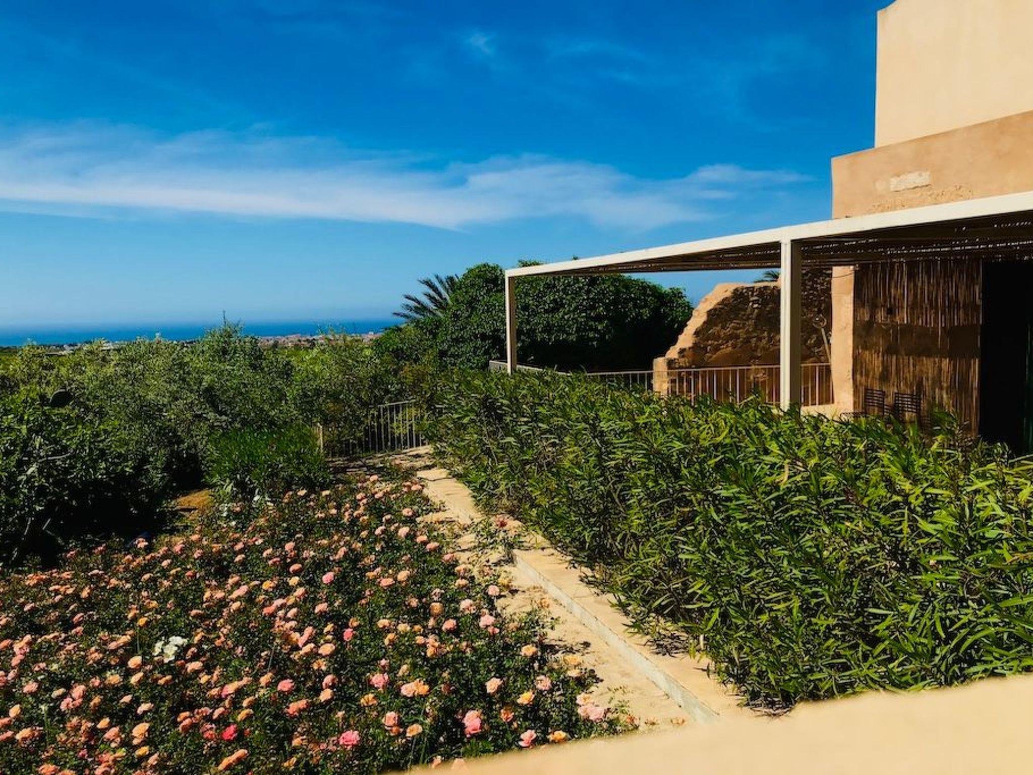 The Casa delle Rose is set in a vast flower garden, surrounded by vineyards, olive groves, orchards and other dense vegetation in a mutual contamination of Mediterranean colours, smells and tastes. It has its own private outdoor area, cosy and immersed in greenery. Two centuries-old carob trees mark the garden, from which there is a breathtaking view over the valley and the sea. The atmosphere is typically Mediterranean. A stay at the Casa delle Rose is a genuine Sicilian experience, where rurality and tradition guarantee a familiar and authentic welcome and hospitality. The possibility of spending pleasant moments of relaxation, enjoying private outdoor spaces, enriches this feeling of wellbeing, ease and intimacy.Outside, in their small gardens and verandas covered with reeds and bordered by palms, bougainvilleas, rose bushes and jasmine, guests can indulge in their moments of food and also enjoy the cool evenings that Sicily's temperate evening climate gives us.