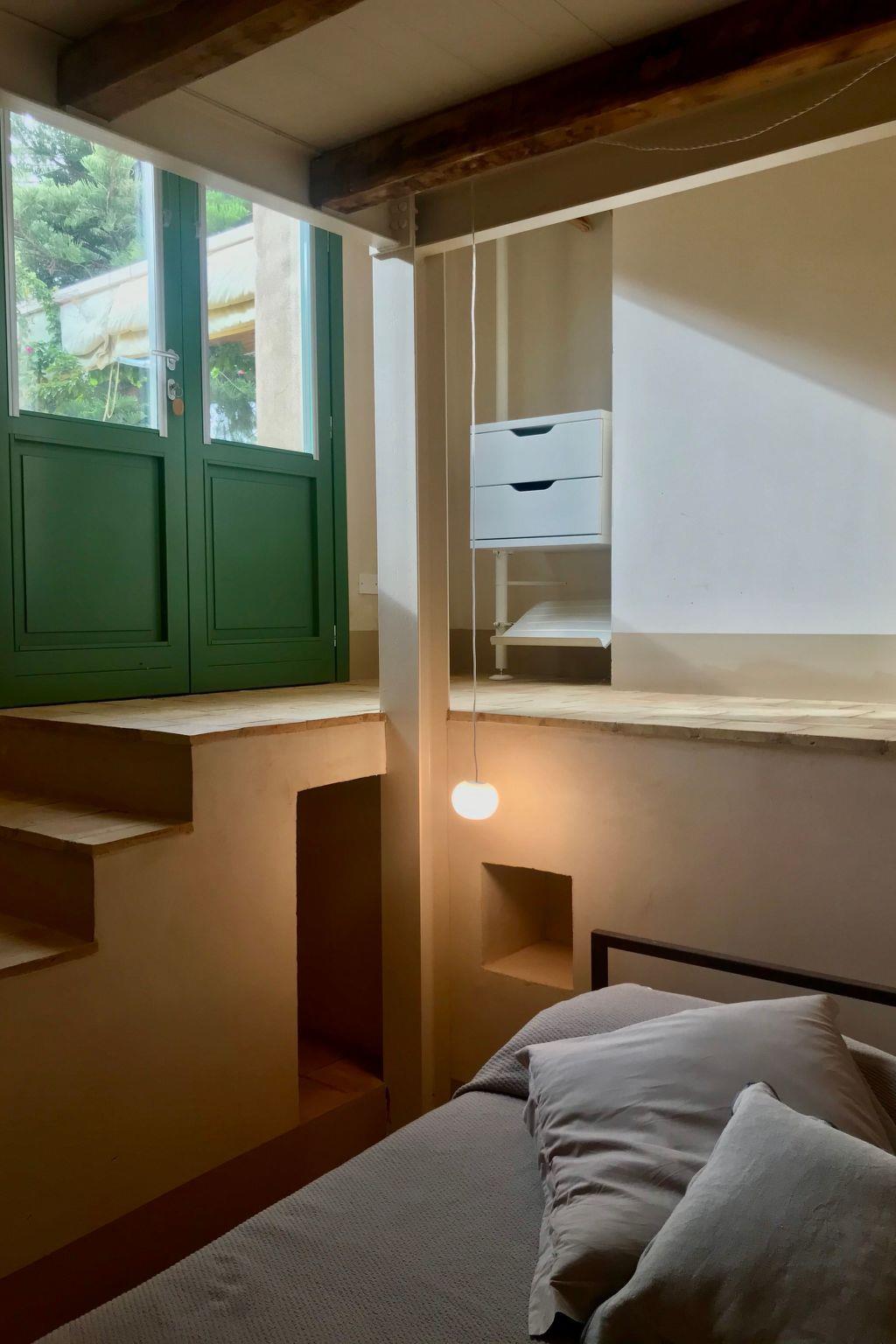 The Bougainvillea, an ornamental plant that has characterised the landscape of Sicily for centuries, welcomes guests who wish to stay in this house. The Bougainvillea House is accessed by entering an open courtyard in which this plant, which flowers for most of the year, covers one of the two reed-covered verandas with which the house is equipped. It is arranged on a single level on the ground floor. One is welcomed into the living area from which, looking out on both the north and west sides, it is possible to admire the lush countryside that surrounds it in its various shades of colour that the changing light gives it during the day. The living room is equipped with all comforts; the furnishings are characterised by simplicity, sobriety and essentiality; it is also characterised by the presence of an efficient cooking corner with a wooden base equipped with all the necessary services and accessories. In the centre of the room, two colourful bergère armchairs allow for fantastic moments of absolute relaxation. Outside the living room there is access to two separate reed-covered verandas, the first exposed to the west and the second to the north, under which guests can indifferently organise their moments dedicated to food and also enjoy the cool evenings that the temperate evening climate of Sicily gives us. The house has two bedrooms.The first bedroom, through a large and bright French window, faces west onto the courtyard outside where the veranda covered by the Bougainvillea insists. Its soft colours reflect that of the surrounding natural elements and harmonise well with the sobriety of its furnishings. One descends into it via a small masonry staircase and overall it gives guests a special feeling of inner intimacy. It has an independent room service at its disposal. The furnishings include a double bed, a walk-in wardrobe and a chest of drawers. The large French window can be closed by curtains made of completely blackout material to allow maximum comfort for guests who prefer to rest in the dark. From the living area, a small hallway leads to the second bedroom; this has been realised with the adoption of a particular architectural solution that has allowed it to be superimposed on the first with the help of an iron supporting structure and wooden walls. Passing through the entrance door, a small masonry staircase provides access to the floor where there are two single beds that can be converted into a double bed; the room inside is equipped with drawers and has an independent bathroom. Special curtains on the window frames, made of completely blackout material, provide maximum comfort for guests who prefer to rest in the dark. The House is fully air-conditioned and Wi-Fi is always active and accessible in all its indoor and outdoor areas.