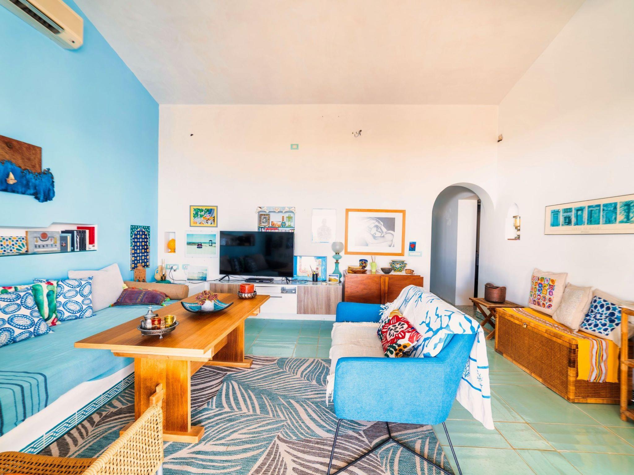 Inside the house has a double room with en-suite bathroom, a twin, a single room and another bathroom, also this one with shower. The living-kitchen area overlooks the outdoor patio which is furnished with table, chairs and deckchairs. The AC is located in the two main bedrooms, it is missing in the room with the single bed (but just keep the door of one of the bedrooms open and the fresh air comes in comfortably).Bedrooms (3) and Bathrooms (2): one double bedroom en-suite; one twin; one single bedroom; one sofa-bed in the living room; one bathroom with shower
