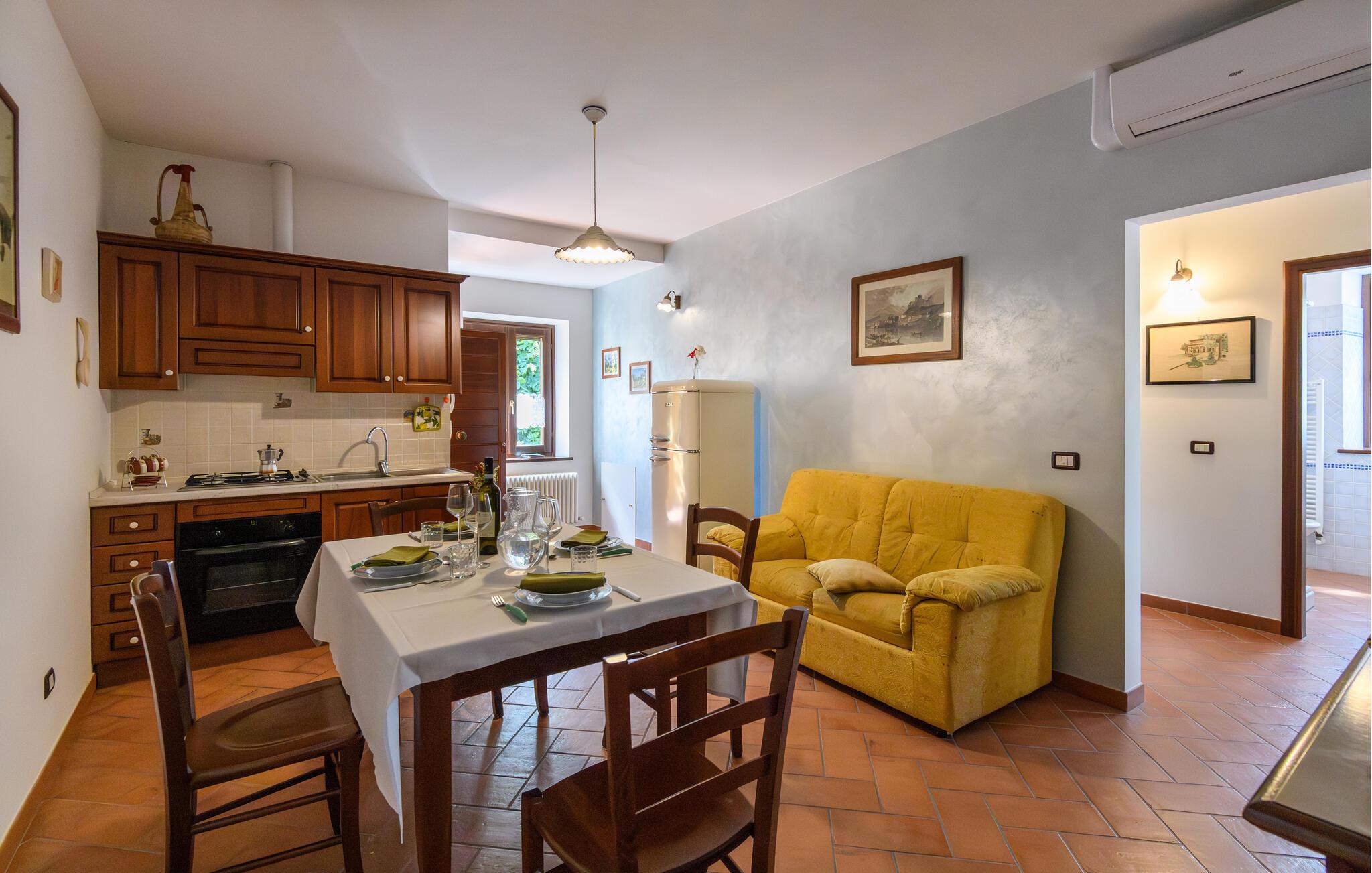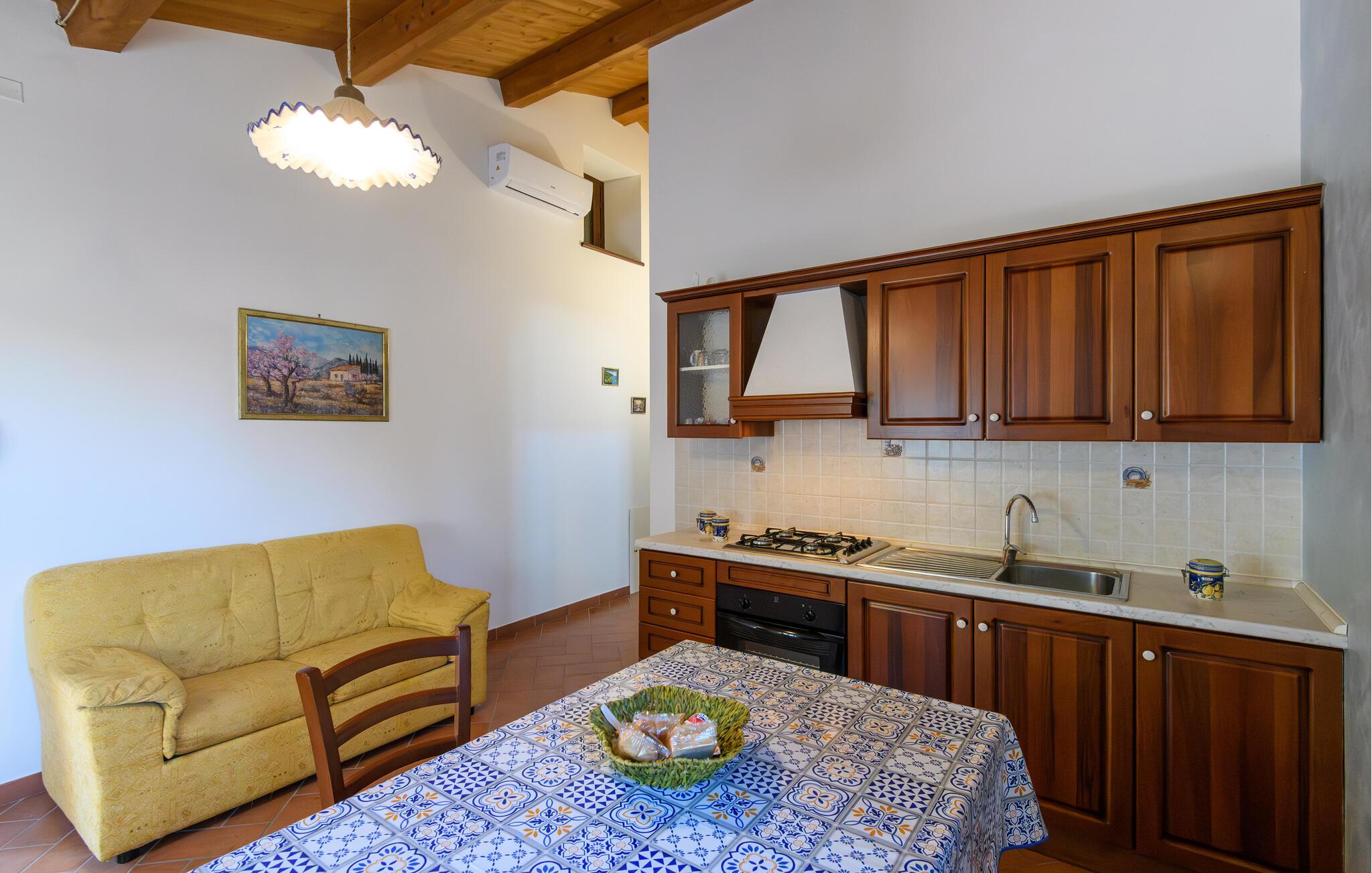 Dette komfortable feriehus har en idyllisk beliggenhed i bakkerne nord for Mergo og tilbyder smuk panoramaudsigt over det maleriske landskab. De omhyggeligt restaurerede værelser lover afslappende timer med familien, hvor I kan nyde hyggelige måltider, hyggelige spilleaftener eller stille læsetid.