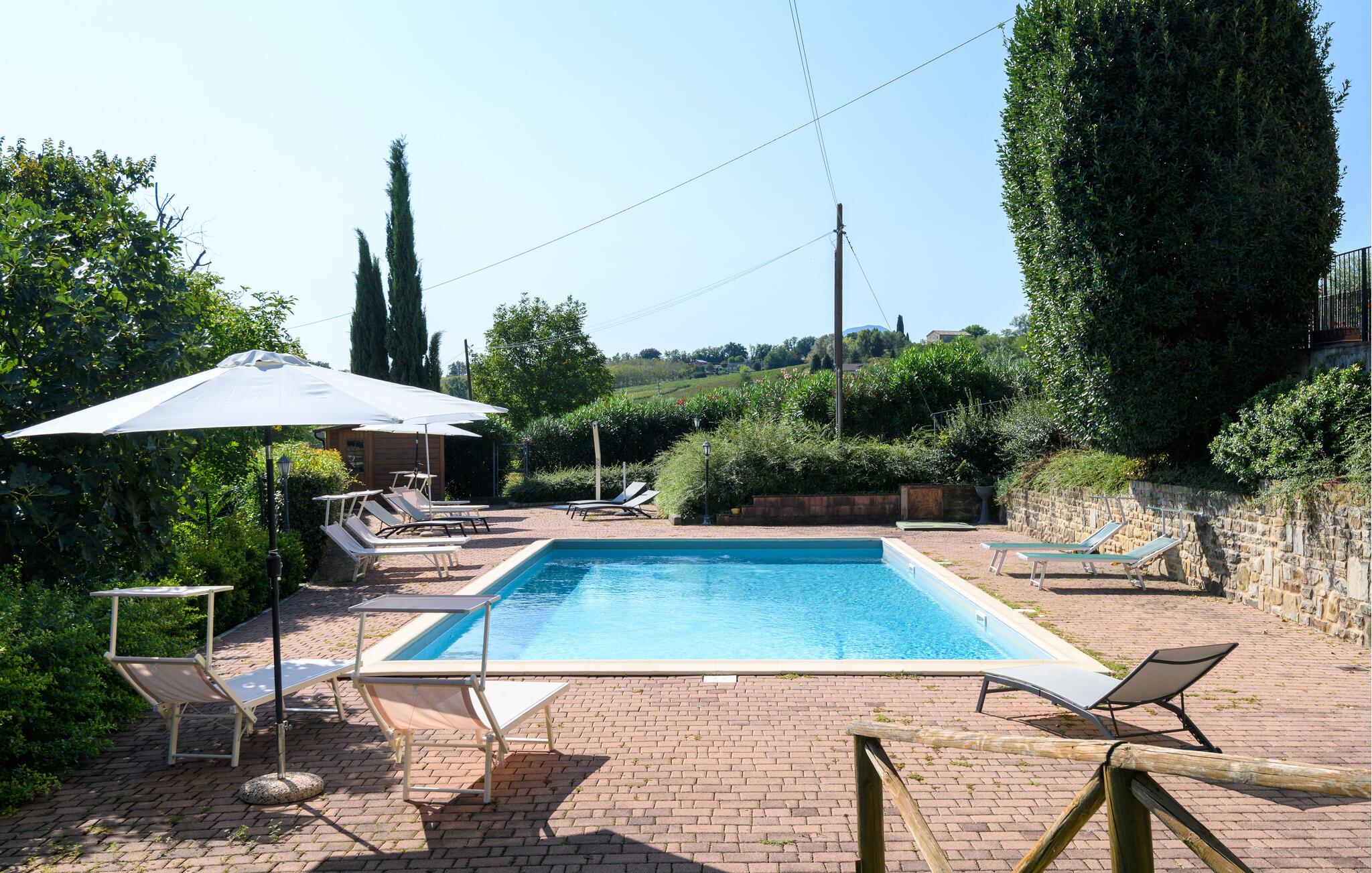 Forkæl jer selv og familien med en afslappende ferie i dette rummelige feriehus med adgang til poolen.