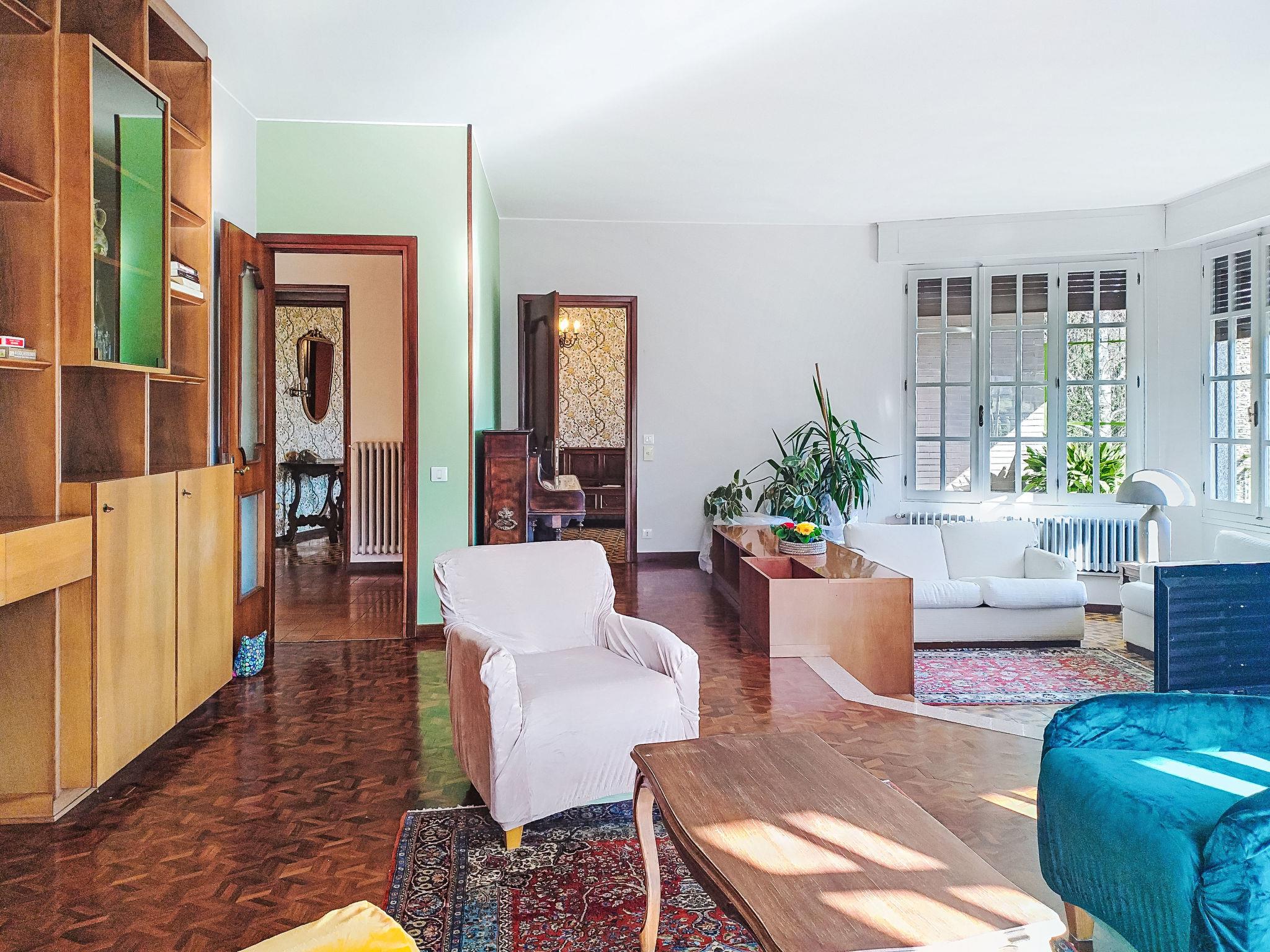 4-room apartment 160 m2 on 1st floor. Practical furnishings: entrance hall. Large living room with TV. Exit to the terrace. 1 room with 2 beds. Exit to the terrace. 2 rooms, each room with 2 double beds (160 cm). Exit to the terrace. Large kitchen (4 hot plates, oven, dishwasher, toaster, kettle, microwave, electric coffee machine) with dining table. Exit to the garden. Bath/bidet/WC, shower/bidet/WC. Gas heating. Heating available only from 01.10. to 30.04. 2 terraces, garden. Terrace furniture. Partial view of the lake and the garden. Facilities: hair dryer. Internet (WiFi, free). Parking (1 car). Please note: private entrance, smoke alarm, fire extinguisher. IT103044C2JXWIO2QX