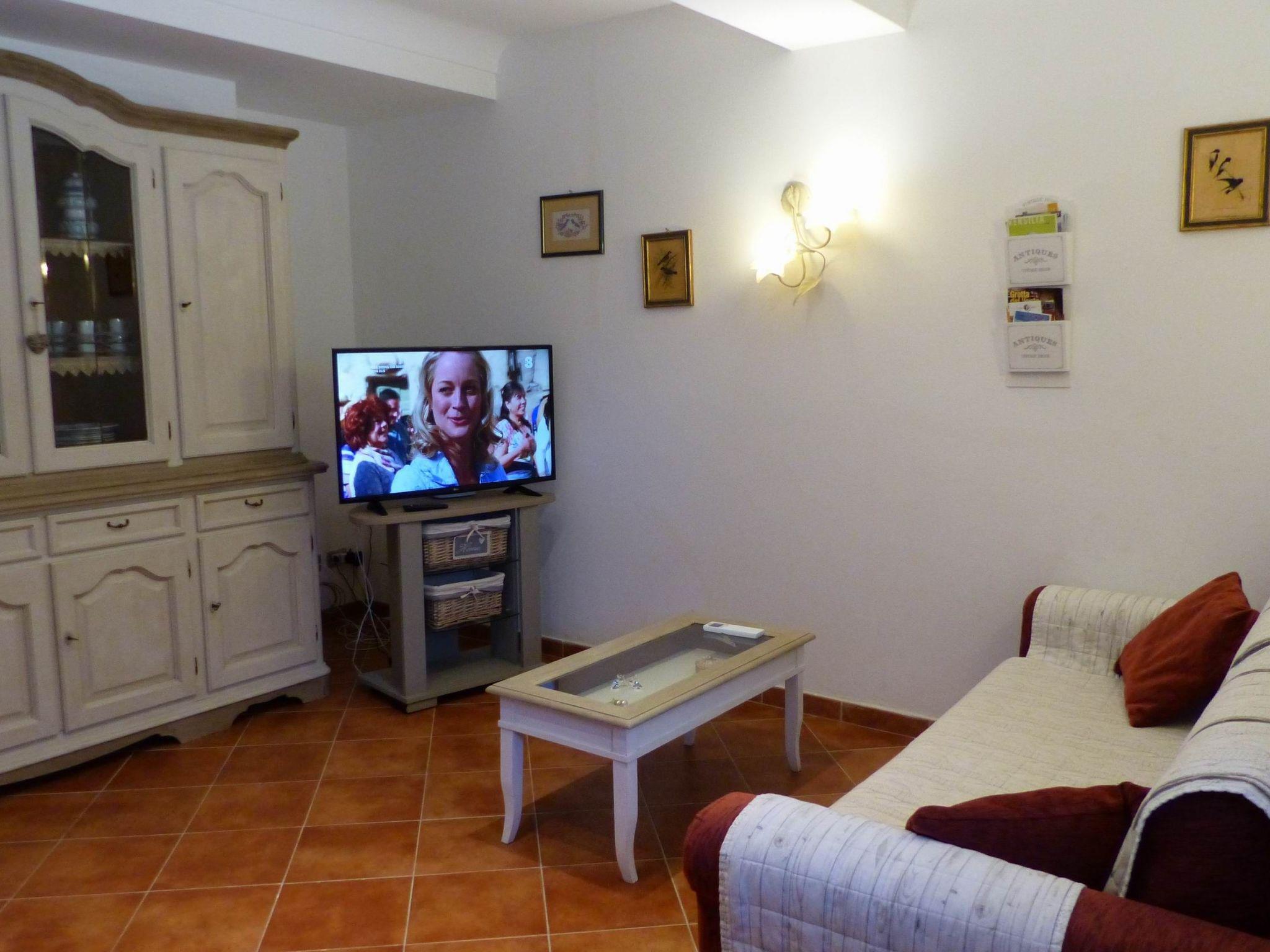 Upstairs there is a double bedroom with TV and panoramic sea view, a twin bedroom, a bathroom with shower. Hairdryer.