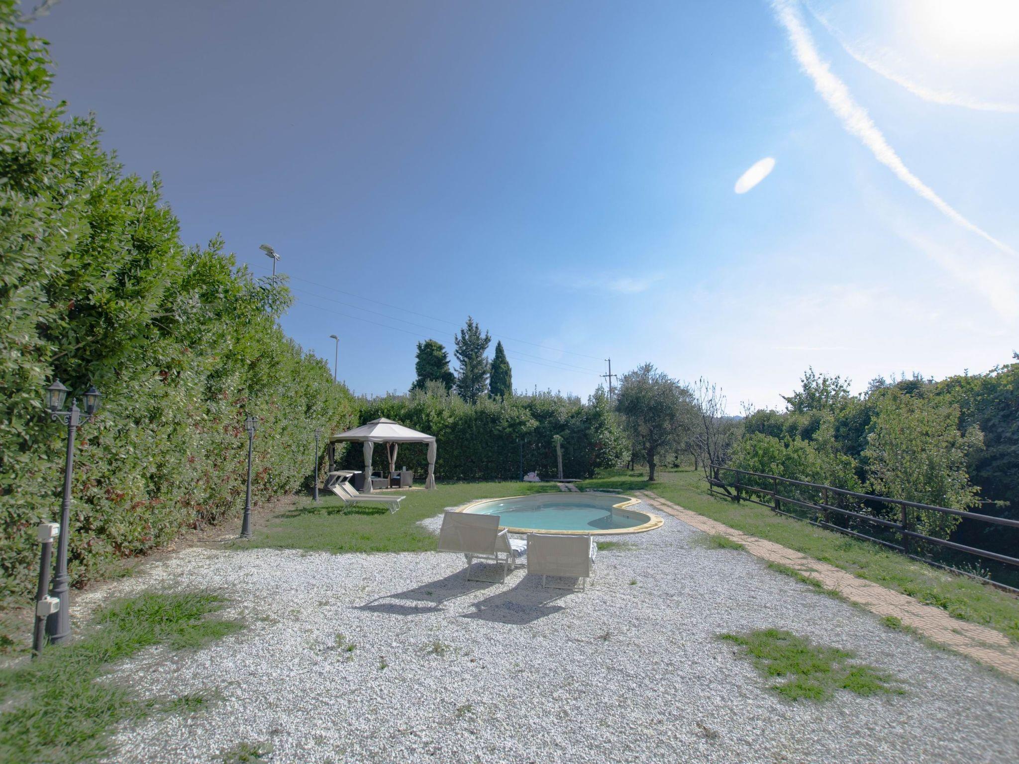 The house is located in a breathtaking panoramic position, overlooking Lake Massaciuccoli and the Versilia coast. Guests have access to a garden in front of the house equipped for al fresco dining and barbecue, another large and exclusive garden where there is a swimming pool (8x4 m, 1.20 m deep, open from 1/6 to 15/9) and a gazebo equipped for relaxation and a small olive grove / orchard. Spectacular panoramic view.