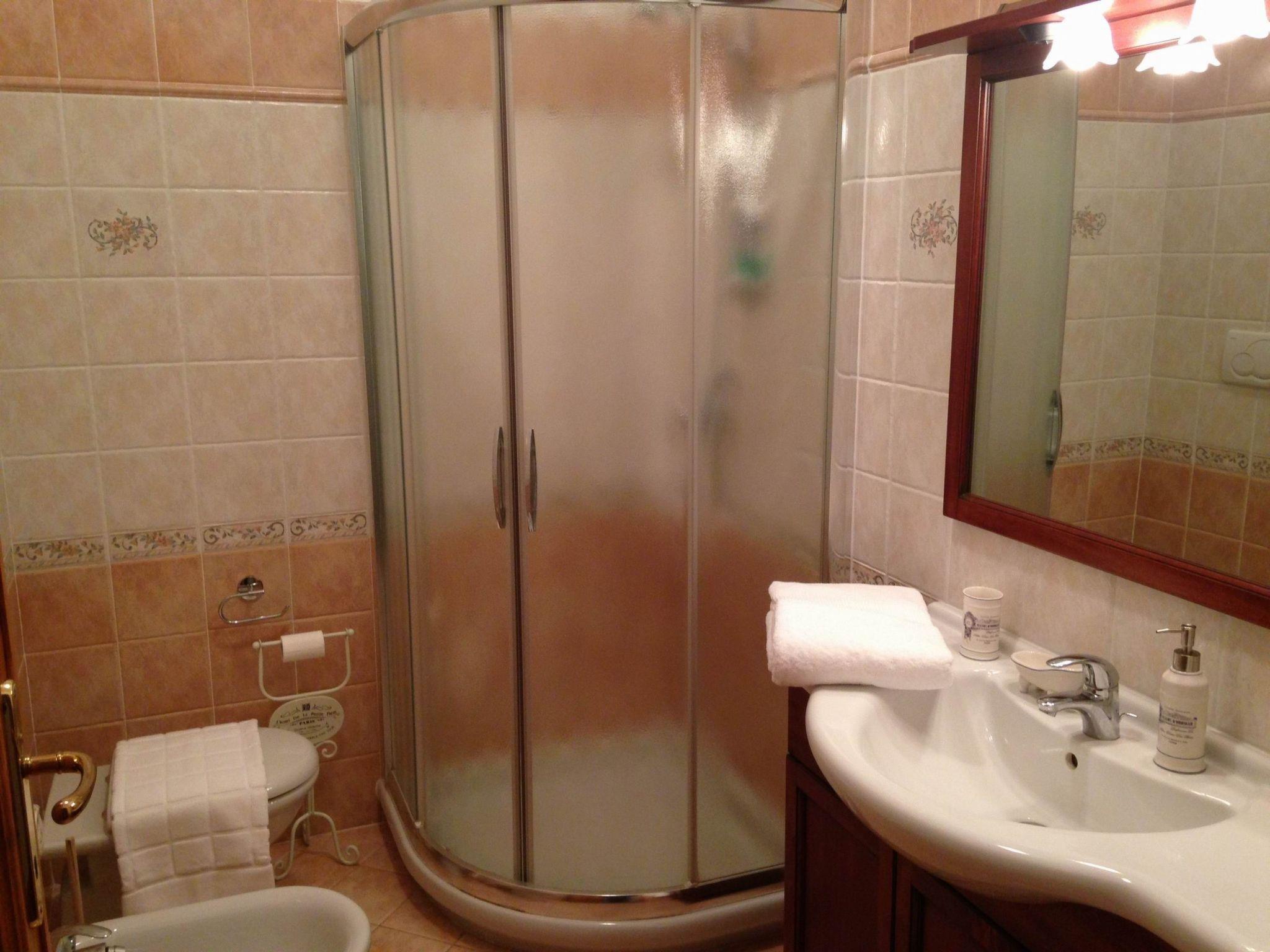 The accommodation, 90 square meters and suitable for 6 people, has an independent entrance and is on two floors. Ground floor: living room with double sofa bed, satellite TV, bathroom and kitchen (fridge with freezer, oven, dishwasher, microwave oven, coffee machine with pods and American coffee machine).