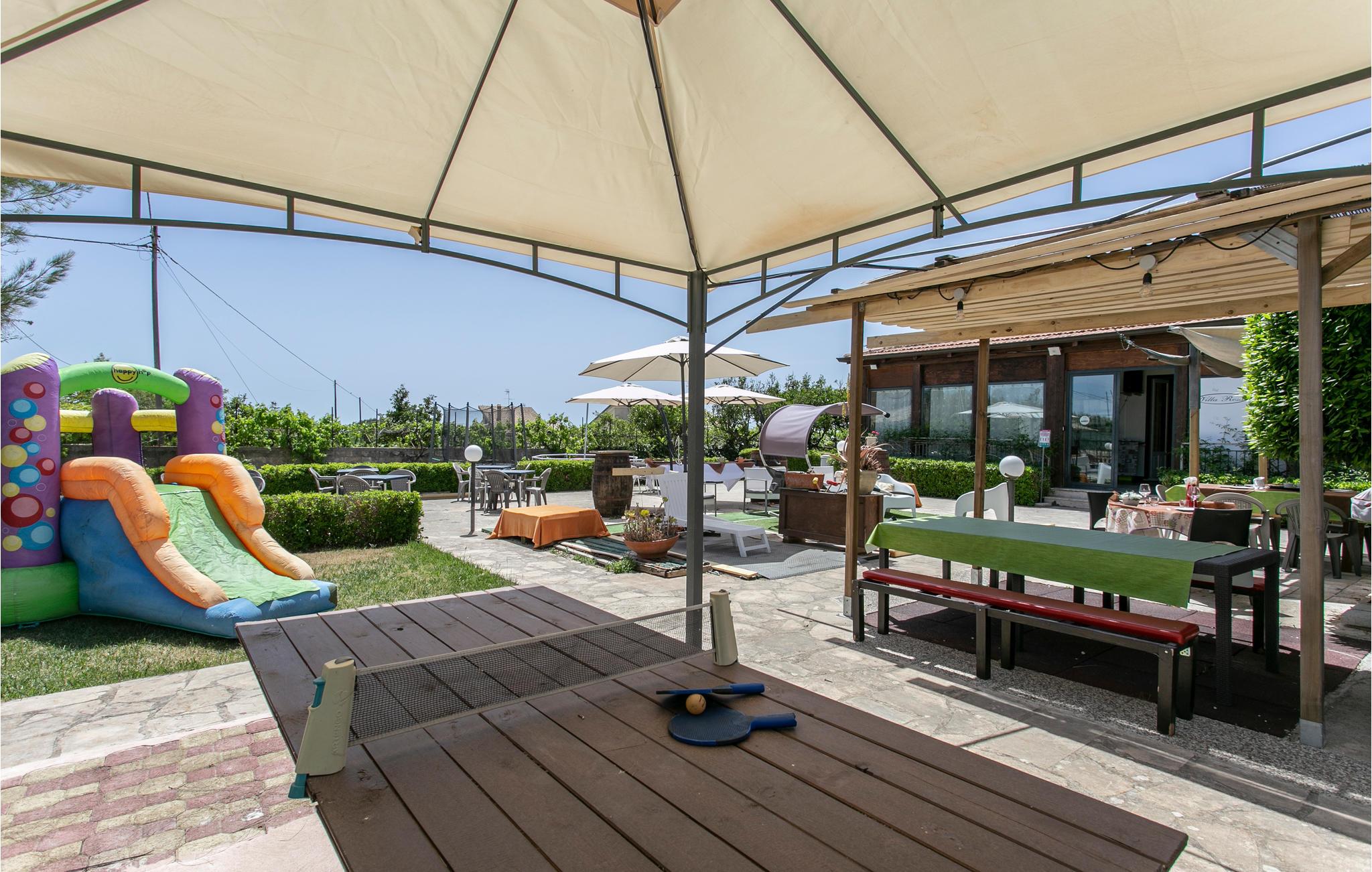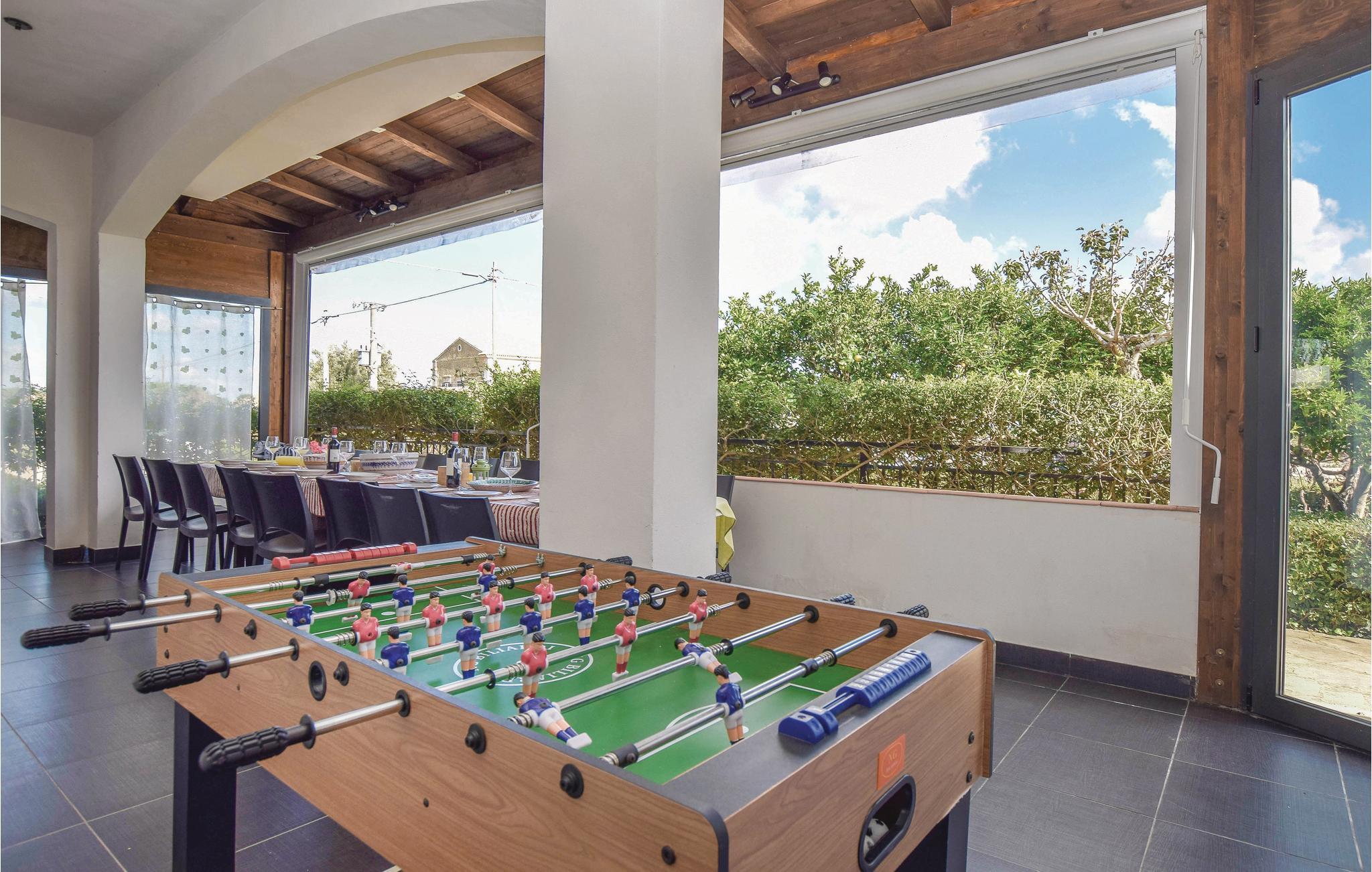 Villa Emma ligger midt i Modicas karakteristiske landskab i et fladt område kun få km fra Cava Ispica (præhistorisk arkæologisk udgravning) som dominerer omgivelserne. Husets ejer har tænkt særligt på jeres børn med rutsjebane, gynge, legehus, trampolin og en lille børnepool i haven (omkreds på 4 m). Men ikke nok med det, her er også bordfodbold som både kan bruges af børn og voksne. I den store have er der også borde, stole, parasoller og et grillhjørne, så I kan lave og spise maden i det fri. Der er fem soveværelser (de tre med eget badeværelse) alle med TV, køleskab og klimaanlæg. Det meget rummelige køkken (ca. 30 m²) med alle former for komfort (grillplade, induktionskomfur mv.). Fra køkkenet er der udgang til den store terrasse med havemøbler og musikanlæg, hvor der er ugenert og udsigt over haven.
