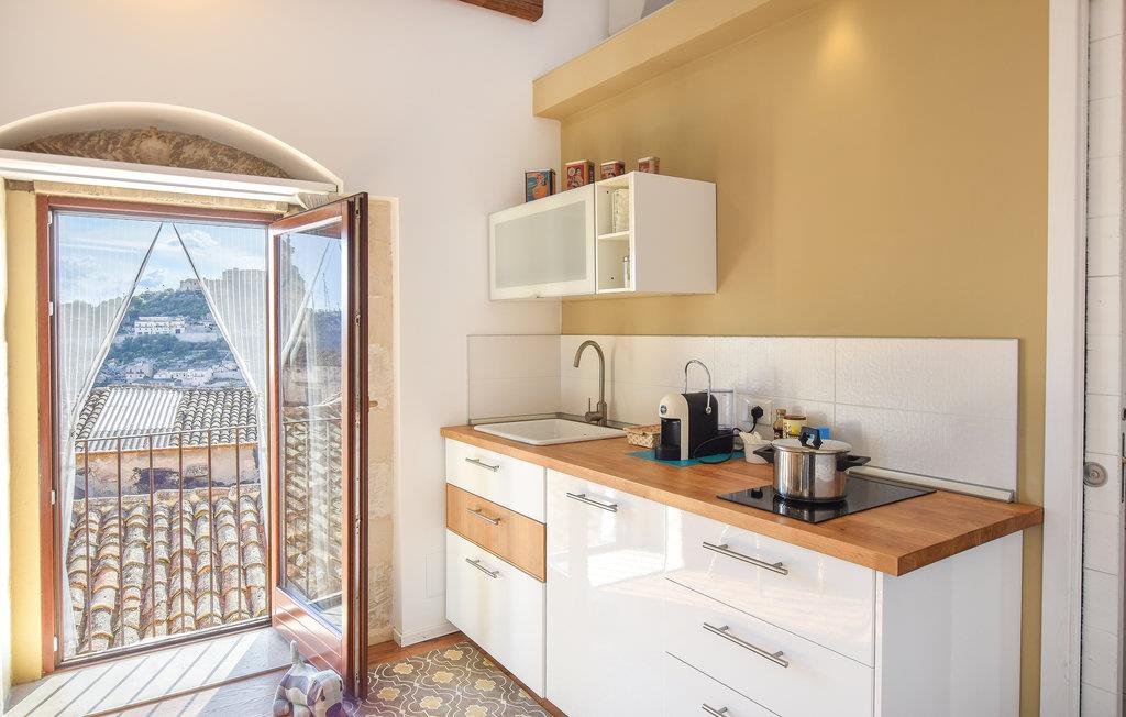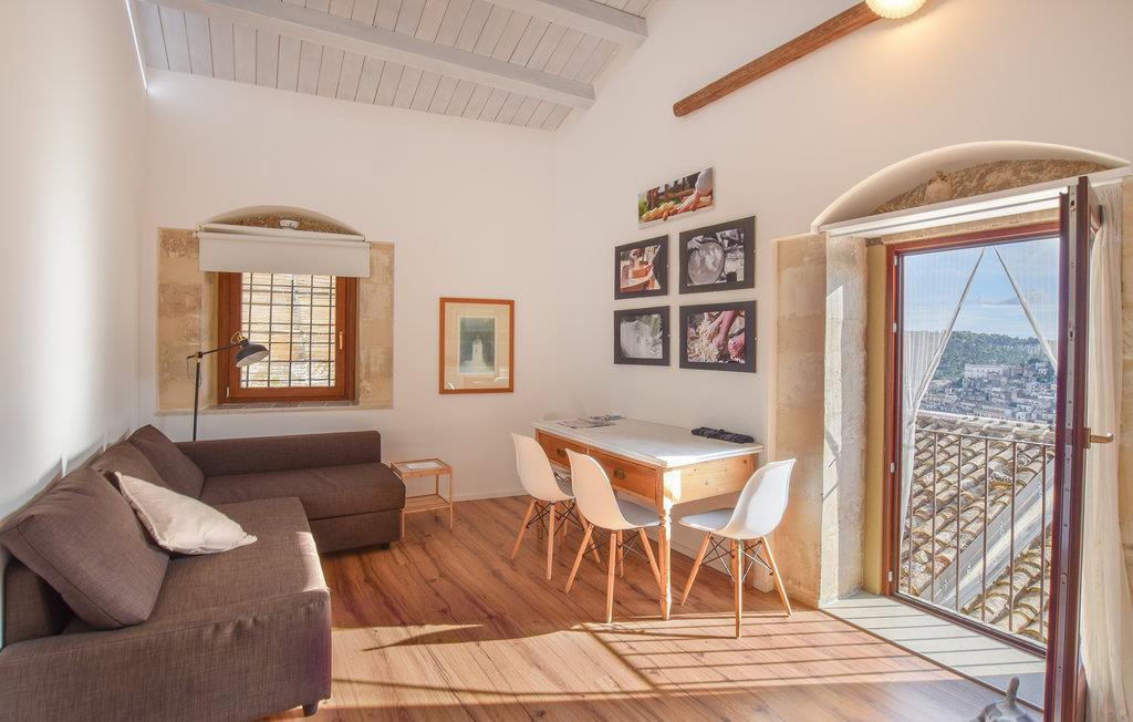 Boligen ligger i den øverste del af Modica mellem smalle og karakteristiske gader, og hørte tidligere til et gammelt palads. Det historiske centrum af Modica ligger cirka 1 km væk. Dette er et fremragende udgangspunkt for at besøge de mest interessante steder i provinsen Ragusa og Syracuse såsom Scicli, Ragusa, Ragusa Ibla og Comiso inden for en radius af 25 km, mens Noto, Porto Palo og Siracusa ligger inden for en radius på 40 km. Der er ca. 15 km til den vidunderlige Iblea-kyst. Lange strande med gyldent sand og krystalklart vand venter dig her. Om aftenen tilbyder Modica mange karakteristiske steder, hvor tradition og kultur ikke har mistet deres charme. Gå ikke glip af at prøve Modica-chokoladen, der er kendt over hele verden.