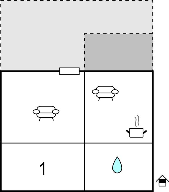 Opholdsstue 16m2 - 1 Soveplads. (Sofa, madras eller lignende).