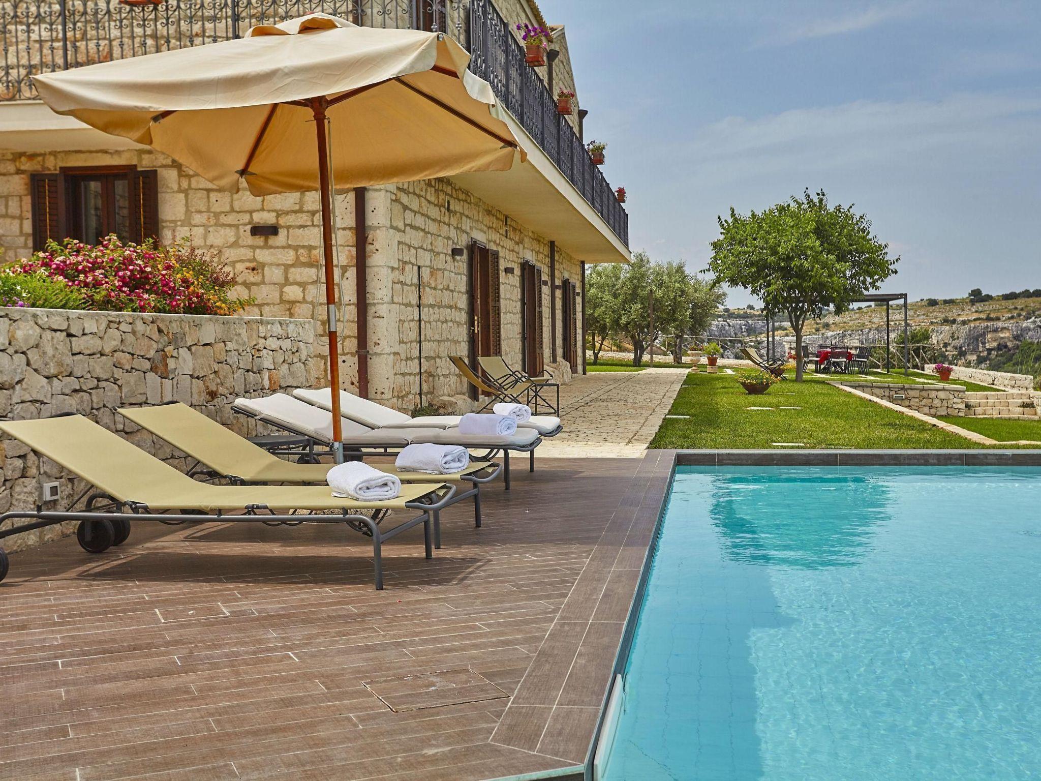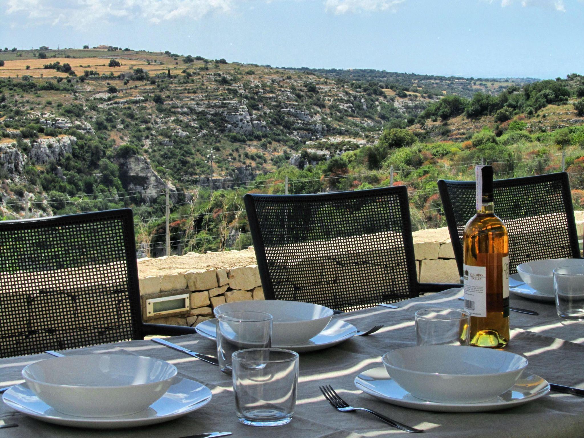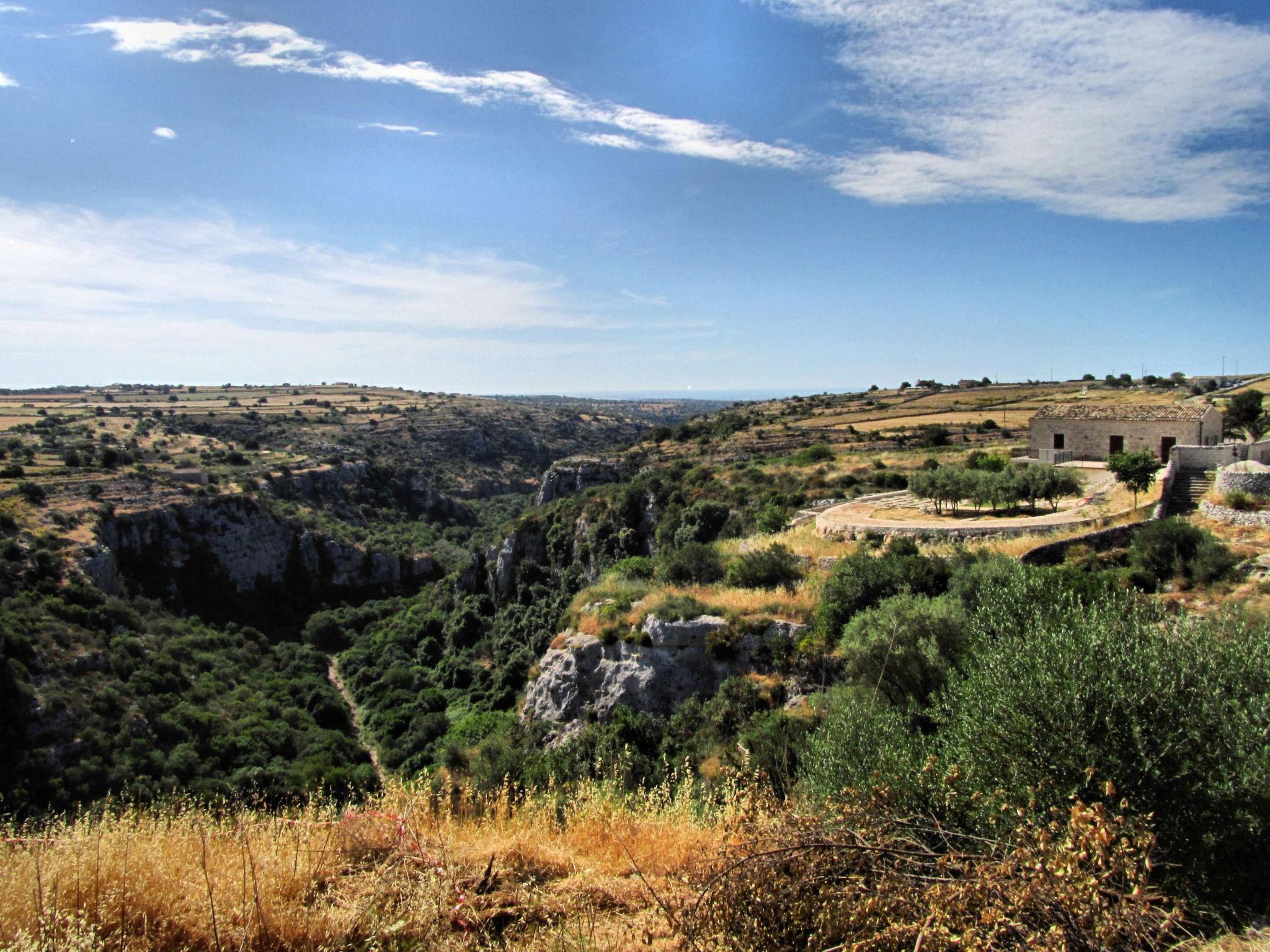 The villa is situated on a rocky outcrop overlooking the picturesque rock settlement of Castello, in an unusual and exclusive location. The house is located above the Cava d'Ispica gorge and thus offers a unique view of the 13 km long valley, which is home to numerous archaeological finds and important Mediterranean flora and fauna.
