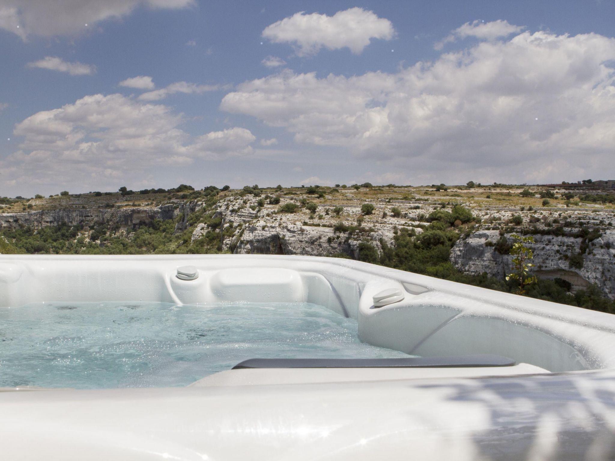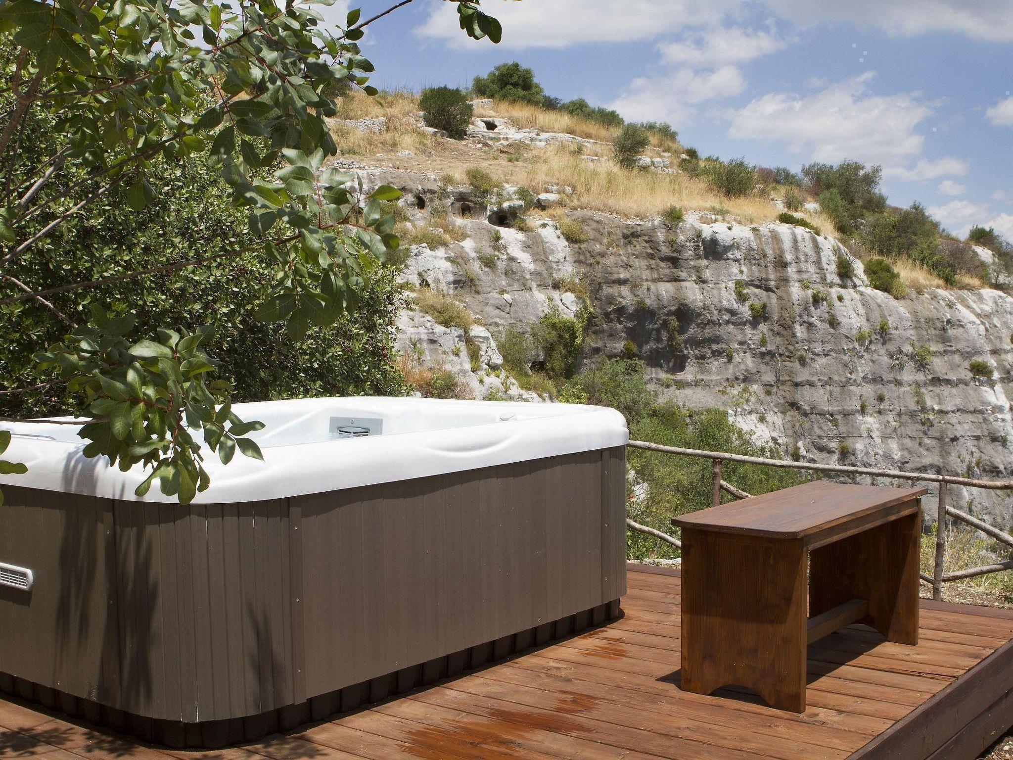 The villa is also surrounded by a large garden. It offers many cosy corners and is beautifully equipped with gazebos, chairs and armchairs, as well as a lovely private pool with parasols and sun loungers, to satisfy every desire. In addition, for an additional fee, you can use the inviting outdoor Jacuzzi, located on a rocky plateau overlooking the valley, just a few metres from the steep slope.
