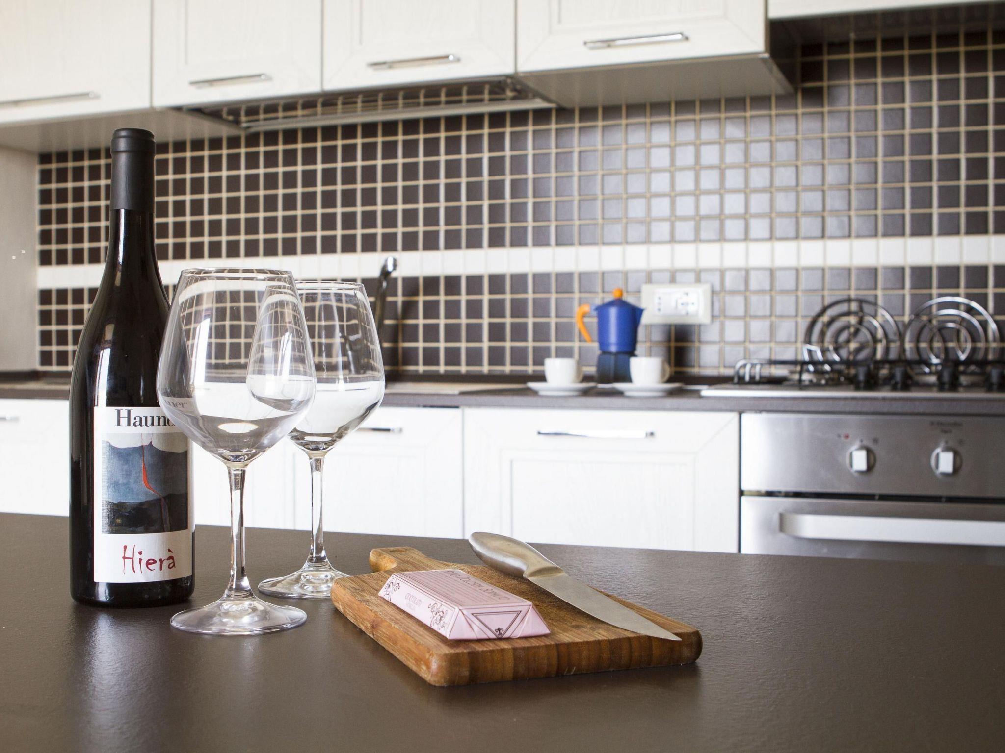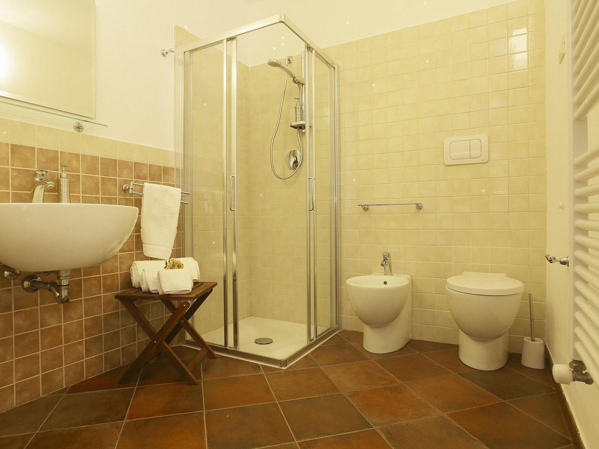 The building, originally inhabited by the estate's tenants, has been restored using natural materials typical of the area, such as limestone and wood. The house consists of seven comfortable rooms, each with its own entrance and private bathroom with shower. All rooms are equipped with air conditioning, minibar and 26'' LCD TV. Five rooms are located on the upper floor, while the other two are on the lower floor. Here you will also find the dining room, from which you can access the kitchen, and a lounge-style living room where you can watch TV or read a book and relax on comfortable sofas. As far as energy costs are concerned, up to 600 kWh are included in the rental price.