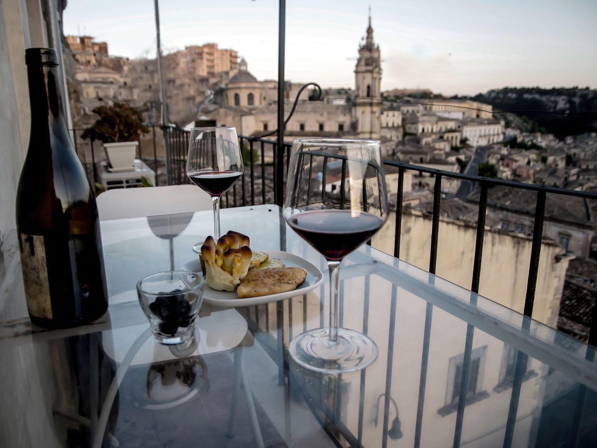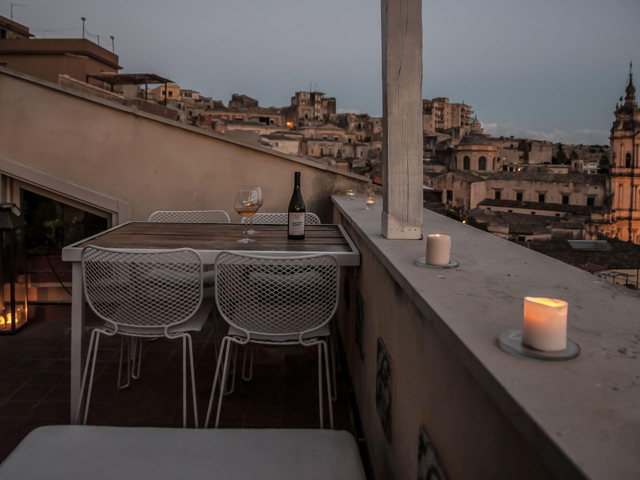 The balcony is an ideal location to have an aperitif overlooking the city lights, with the impression of being suspended in mid-air over the historic centre of Modica.