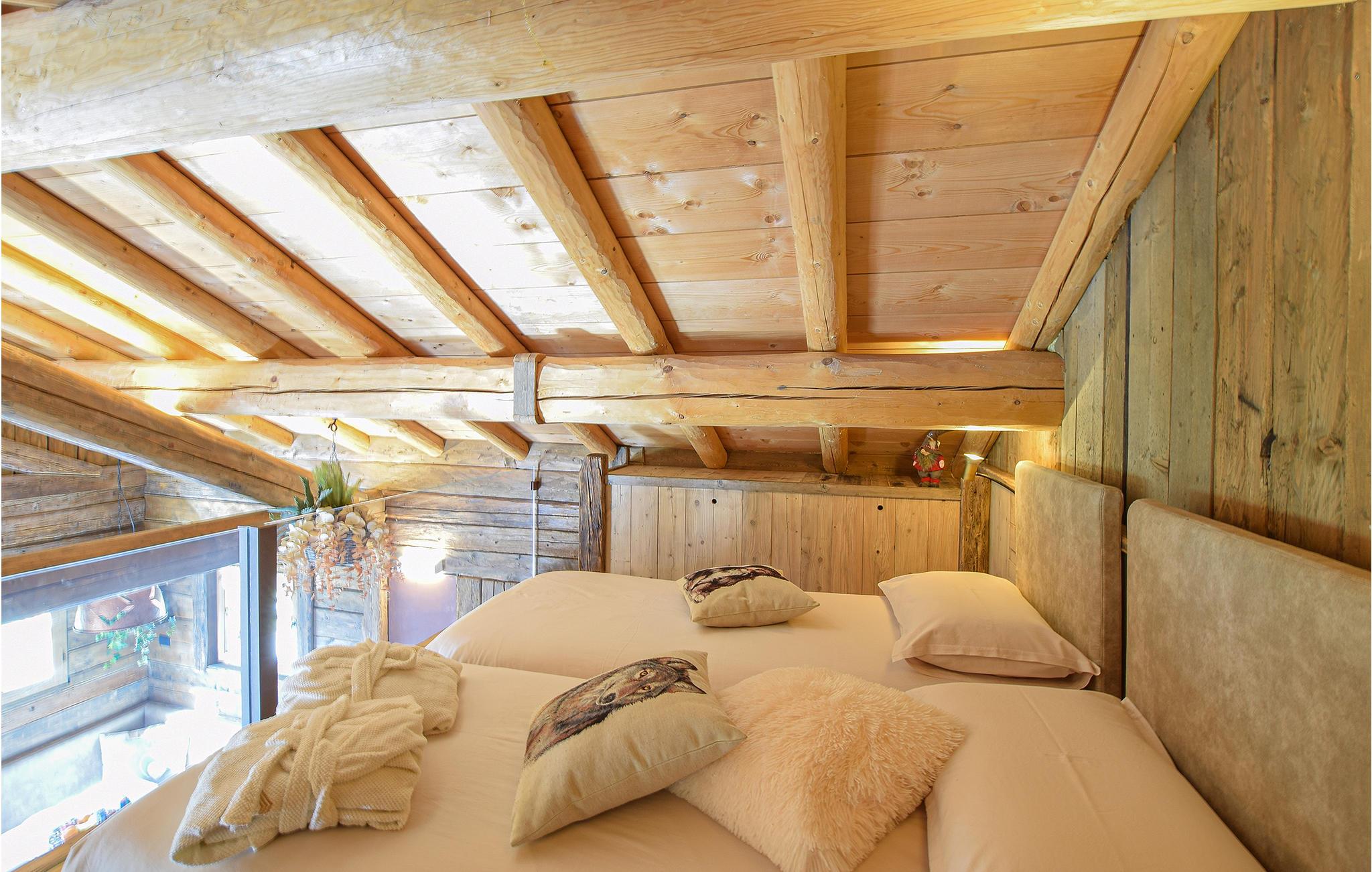 Dette fantastiske feriehus tilbyder ski- og wellnessferie i ét. Den ligger kun 20 m fra den nærmeste skilift, hvilket gør den ideel til en ferie med mange timer på bjerget og på ski. Indenfor finder I en blanding af rustikt træ og moderne glaselementer med flotte kvalitetsløsninger. Husets hjerte er det åbne køkken og spisestue, hvor I kan samles til et lækkert måltid efter en lang dag i den friske luft. Et andet soveværelse er placeret på galleriet. Bemærk venligst at dette rum er åbent.