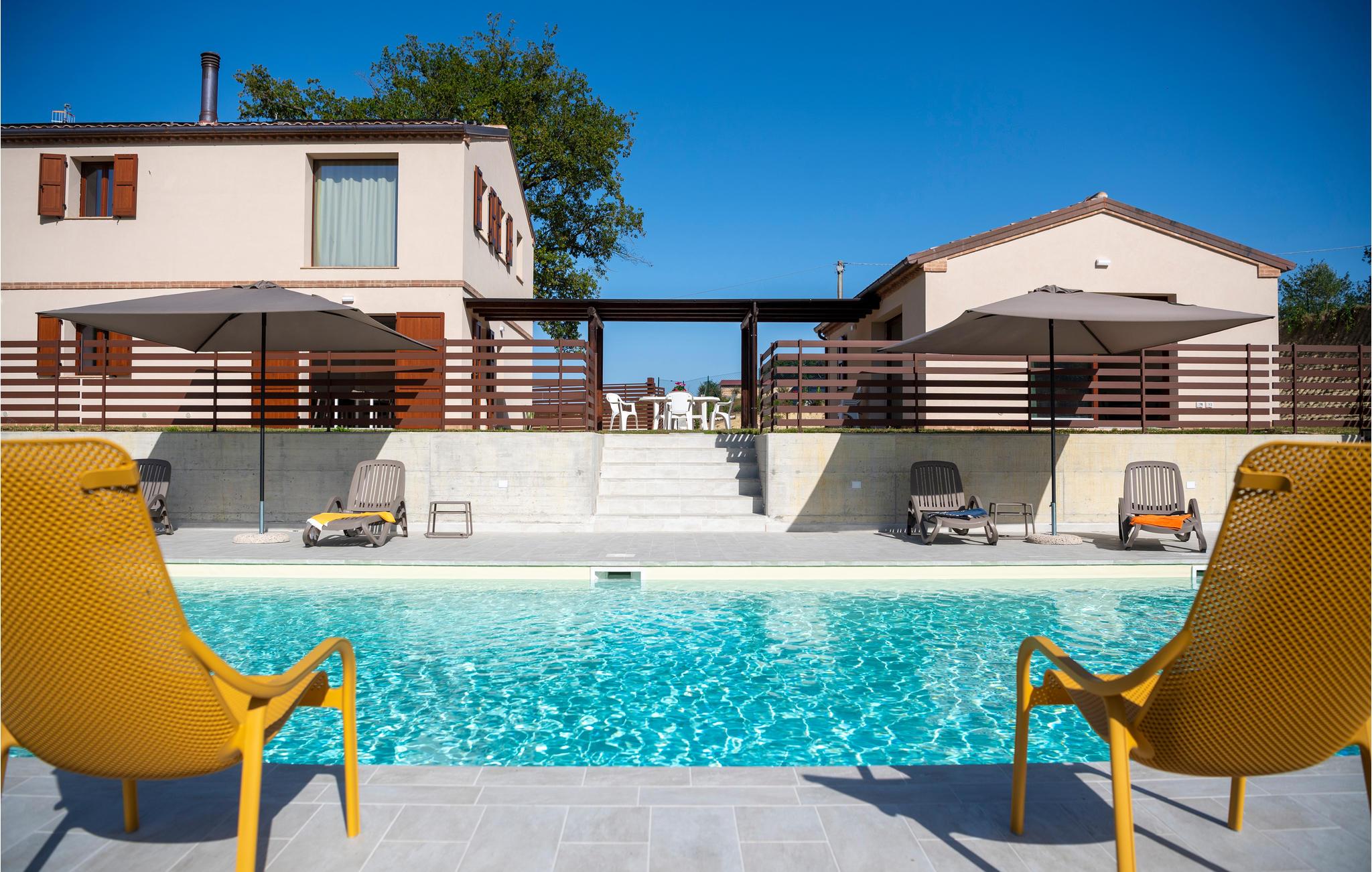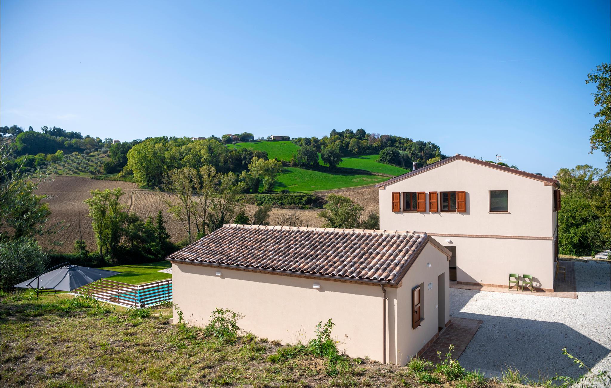 Midt i det bakkede grønne landskab i Marche-regionen ligger dette feriehus med pool. Huset er indrettet med alle moderne bekvemmeligheder. Lav lækre pastaretter sammen i køkkenet og slap af ved poolen, som lægger op til mange skønne stunder. Læn jer tilbage i liggestolene med en cocktail i hånden, mens børnene plasker rundt i poolen. Samtidig har I udsigt over smukke marker og grønne trætoppe. Nyd de stemningsfulde sommeraftener med lækker mad på terrassen. Børnene kan lege frit i den store indhegnede have.