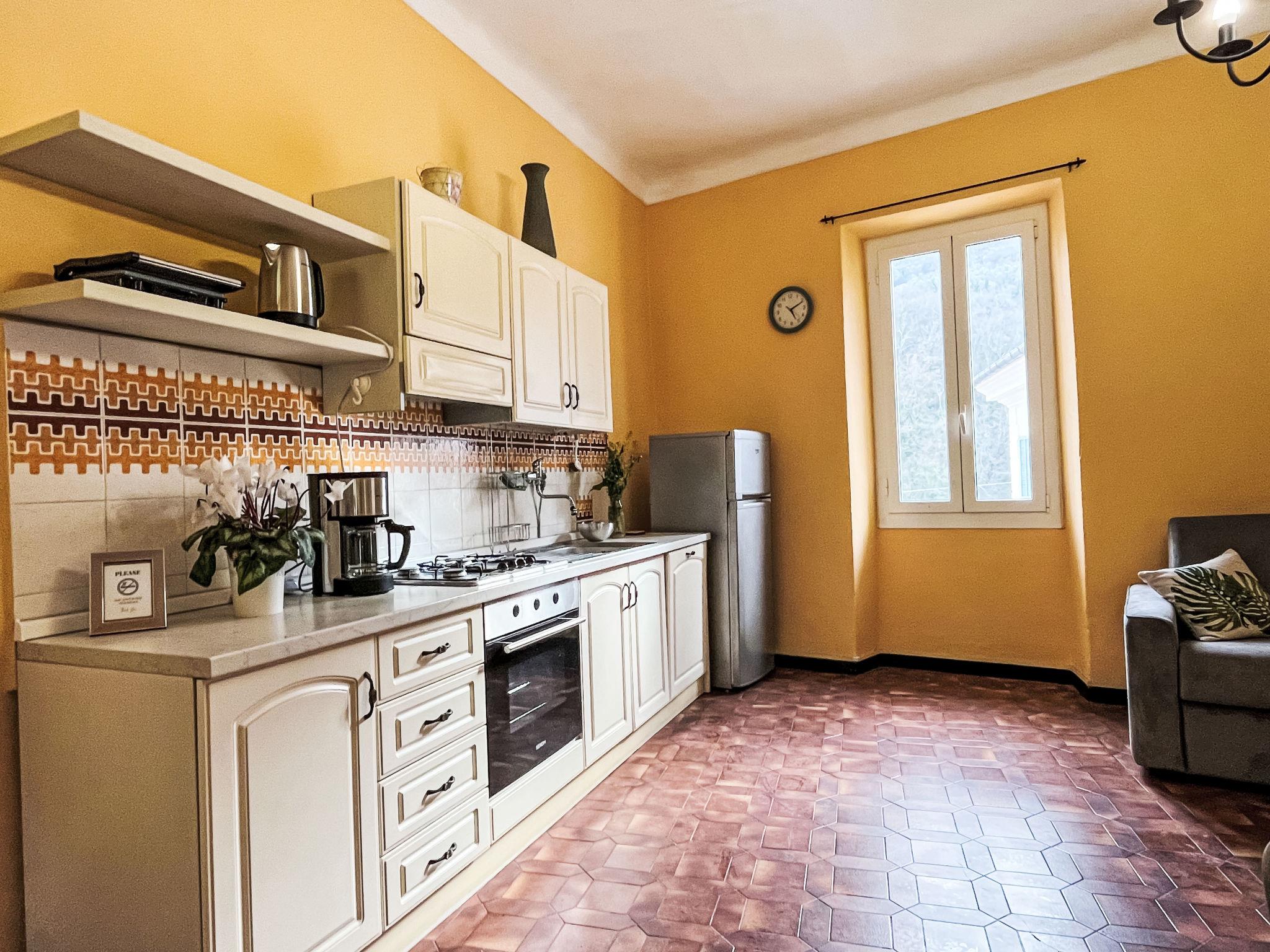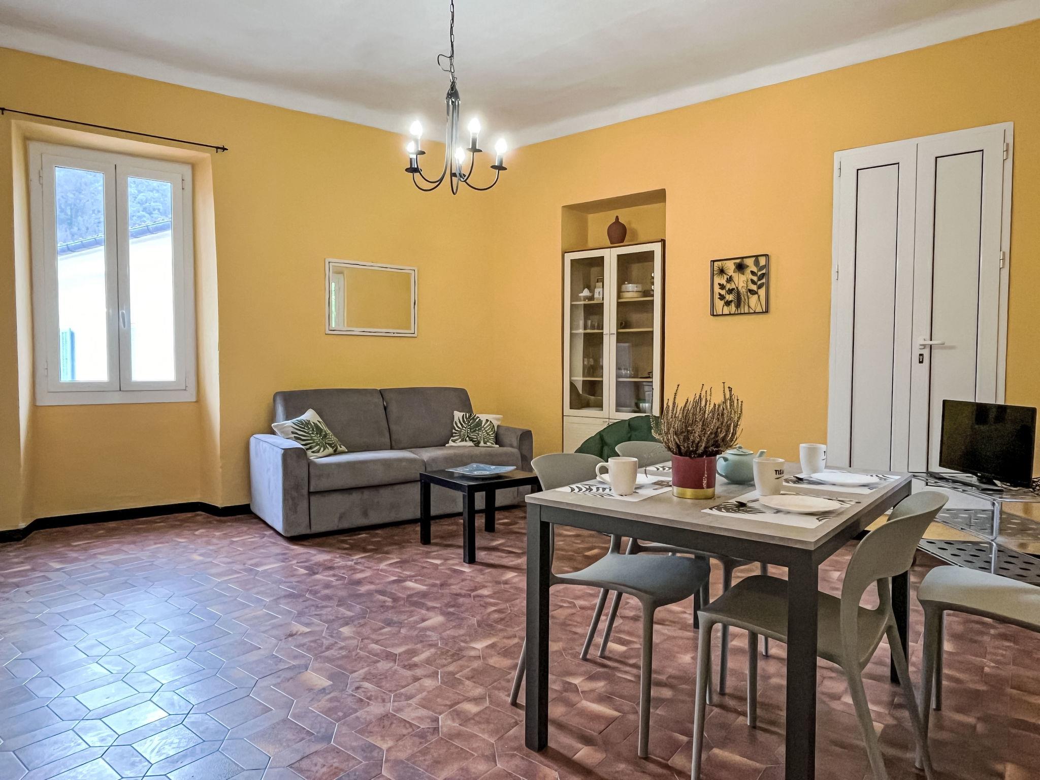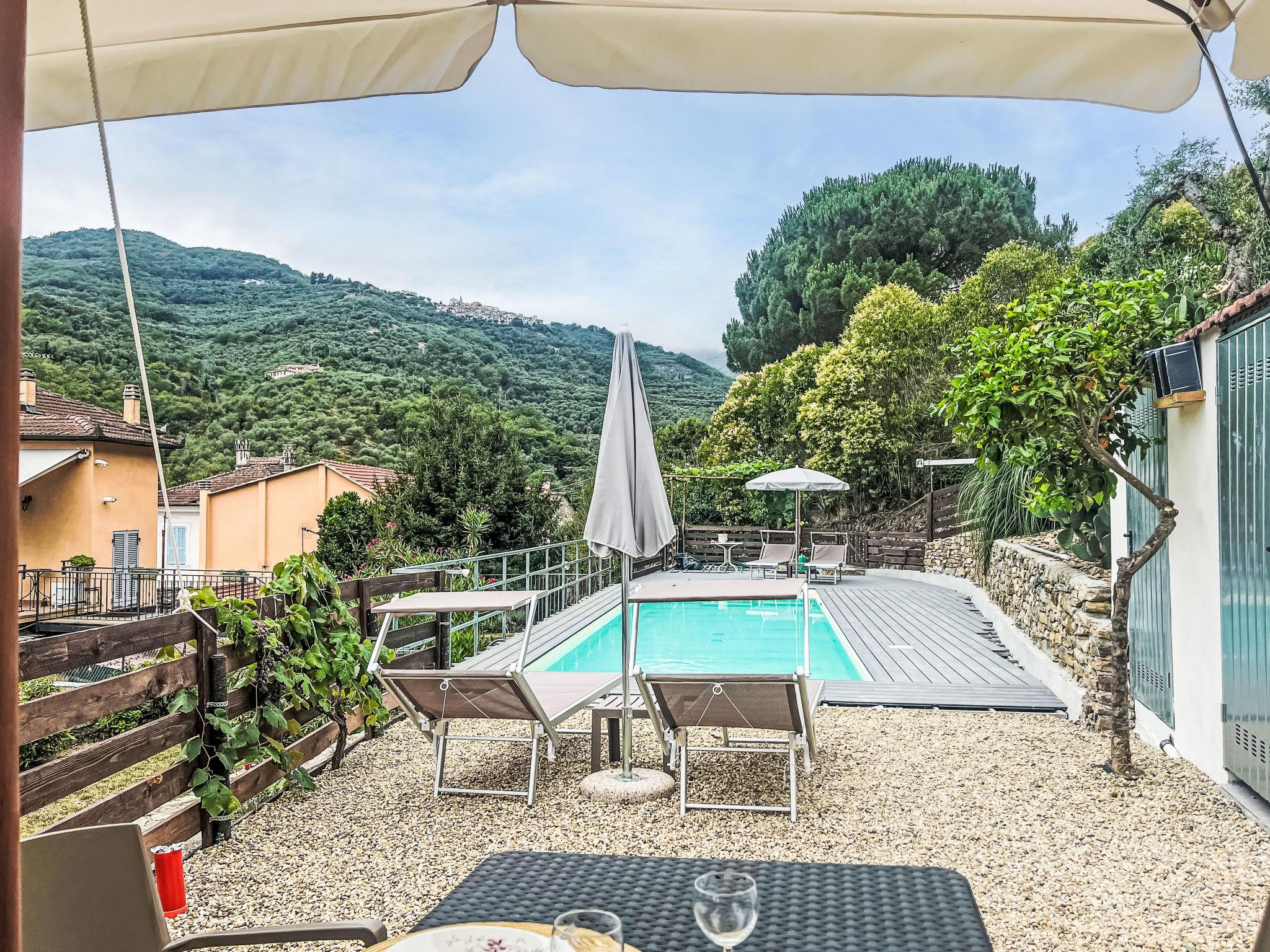 Agriturismo "Borgo Olimpo", 2 storeys, renovated in 2024, surrounded by trees and vineyards. 4 apartments in the property. In the centre of Molini di Prelá 3 km from the centre of Dolcedo, 12 km from the centre of Imperia, in a quiet, sunny position, 12 km from the sea. For shared use: property 3'000 m2, large, beautiful terraced garden (fenced), lawn for sunbathing, swimming pool secured, fenced (10 x 3 m, depth 140 cm, seasonal availability: 01.May. - 10.Oct.). Shower/WC in the pool area, outdoor shower, poolhouse with fridge and cooking stove, boccia, patio, terrace, garden furniture, pool maintenance by the owner/gardener. Private: natural garden, orchard. In the house: internet access, WiFi, spa area, storage room for bicycles. Cook on request (extra). Bread roll service and beverage service. Public parking 30 m. Grocery 200 m, supermarket 8 km, shopping centre 12 km, restaurant, bar 20 m, bakery 200 m, café 20 m, bicycle rental 4 km, bus stop 20 m, railway station "Imperia Oneglia" 12 km, sandy beach "Borgo Marina Imperia" 12 km pebble beach "Borgo Prino" 10 km, shingle beach "Borgo Foce Imperia" 10 km, bathing lake "Laghetti di Prelá" 500 m. Walking paths from the house 10 m, cycle lane 12 km, children's playground 30 m. Nearby attractions: Valloria (160 bemalte Türen) 4 km, Porto Maurizio Altstadt Parasio 12 km, Bussana Vecchia Erdbebendorf 25 km, Triora Hexendorf 45 km, Monte Carlo Monaco 76 km, San Remo 30 km. Hiking paths: Monte Faudo (1149 m) Mountainbike Trails 15 km, Laghetti di Lecchiore (Wanderweg) 10 km. Please note: car recommended.