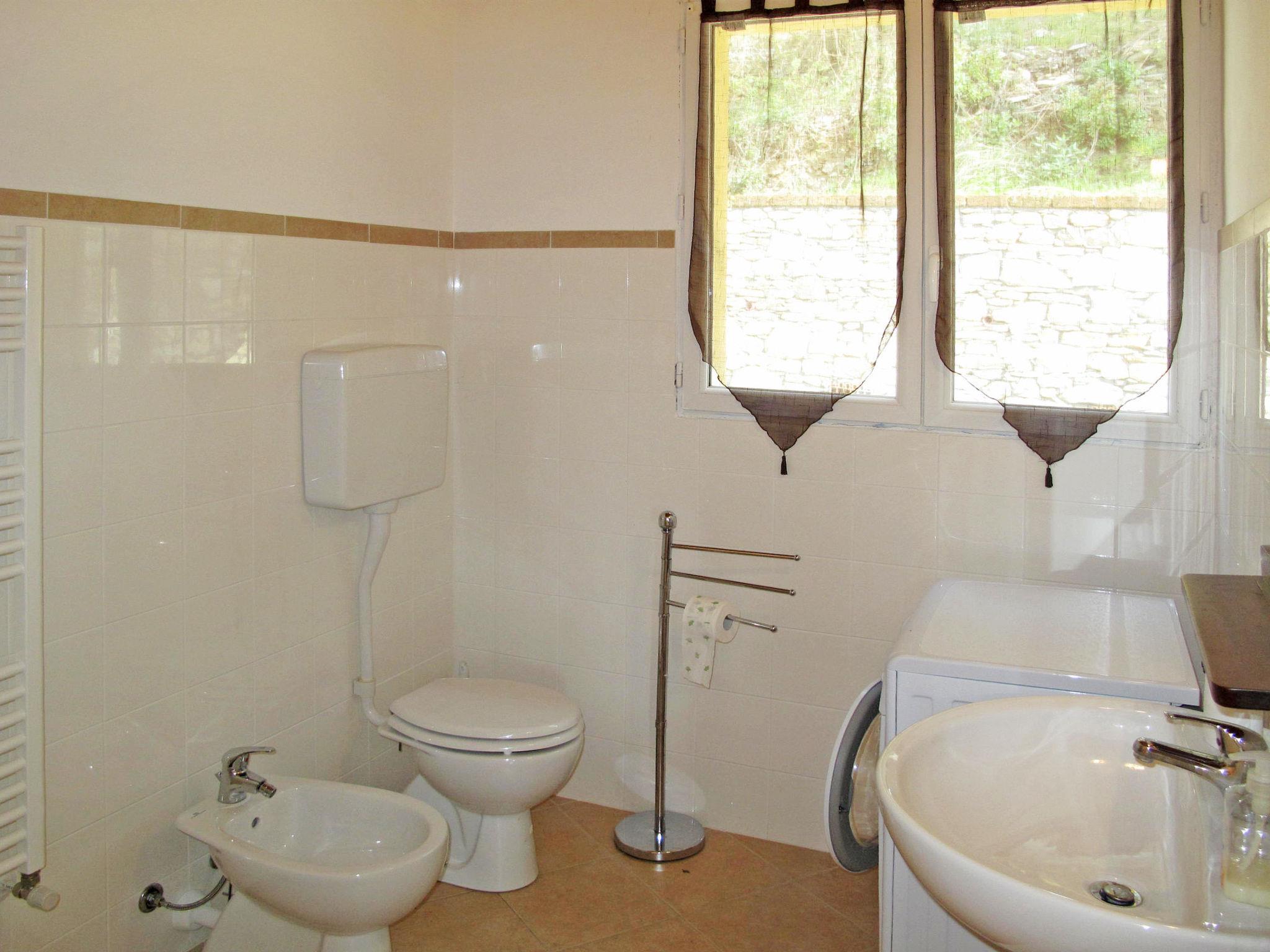 Small, beautiful residence "Clara", built in 2014, surrounded by trees. 4 apartments in the residence. In the hamlet Canneto 3 km from the centre of Prelà, 5 km from the centre of Dolcedo, 12 km from the centre of Imperia, in a quiet, sunny position on a slope, 15 km from the sea, in a cul-de-sac, in the countryside. For shared use: natural state property 1'200 m2 (fenced) with trees, natural garden, swimming pool (above ground) kidney-shaped (8 x 4 m, depth 120 cm, seasonal availability: 01.Jan. - 31.Dec.). Outdoor shower. 50 m long steep, narrow motor access to the house (ramp). Parking (limited number of spaces) at the house. Shop 3 km, supermarket 12 km, restaurant 3 km, bar 3 km, bakery 3 km, café 3 km, bus stop 300 m, railway station "Porto Maurizio" 15 km, sandy beach "Imperia - Porto Maurizio" 15 km. Please note: car recommended.