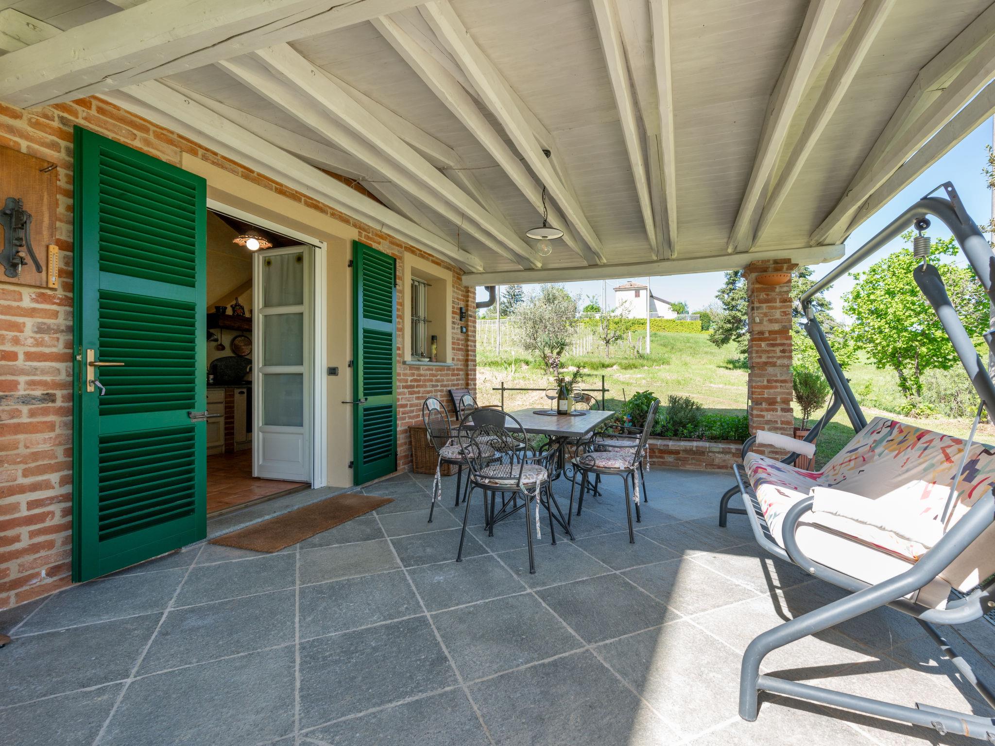 Cottage "Il Valletto". 1 km from the centre of Mombaruzzo, on the outskirts, 23 km from the centre of Alessandria, 34 km from the centre of Asti, 80 km from the sea. Private: garden 2'000 m2 (not fenced) with wildlife garden, meadow, orchard. Patio, terrace (30 m2), garden furniture, barbecue, roofed, parking at the house on the premises. Shop 1 km, supermarket 9 km, bus stop 2.5 km, railway station "Alessandria" 23 km.