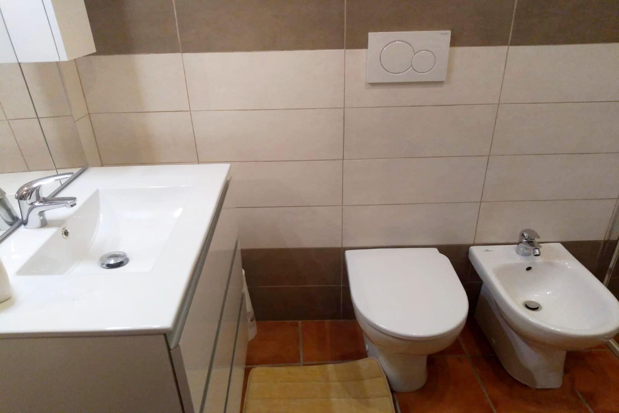 Stueetage: (Køkken(elkedel, komfur, emhætte, kaffemaskine, espressomaskine, ovn, mikrobølgeovn, opvaskemaskine , køle-fryseskab), Stue/soveværelse(enkeltsovesofa, dobbeltseng, Fjernsyn, spisebord), badeværelse(bruser, håndvask, toilet, bidet, vaskemaskine), rejseseng, varme) have(deles med andre gæster, 500 m2), havemøbler, solstole, grill(deles med andre gæster), parkering, barnestol, crib(free)