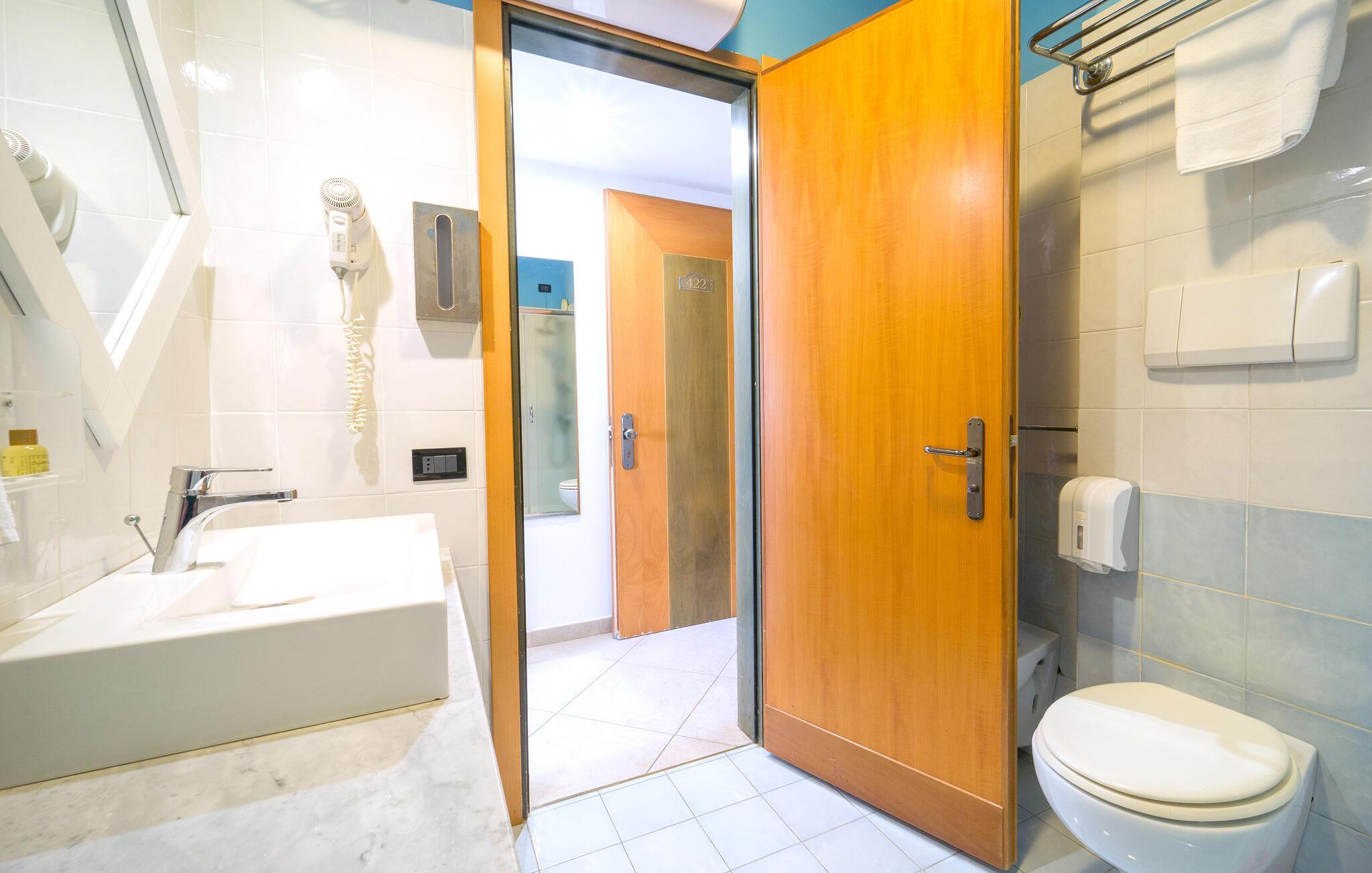 Badeværelse (nr. 1) - WC. Varmt og koldt vand. Bruser