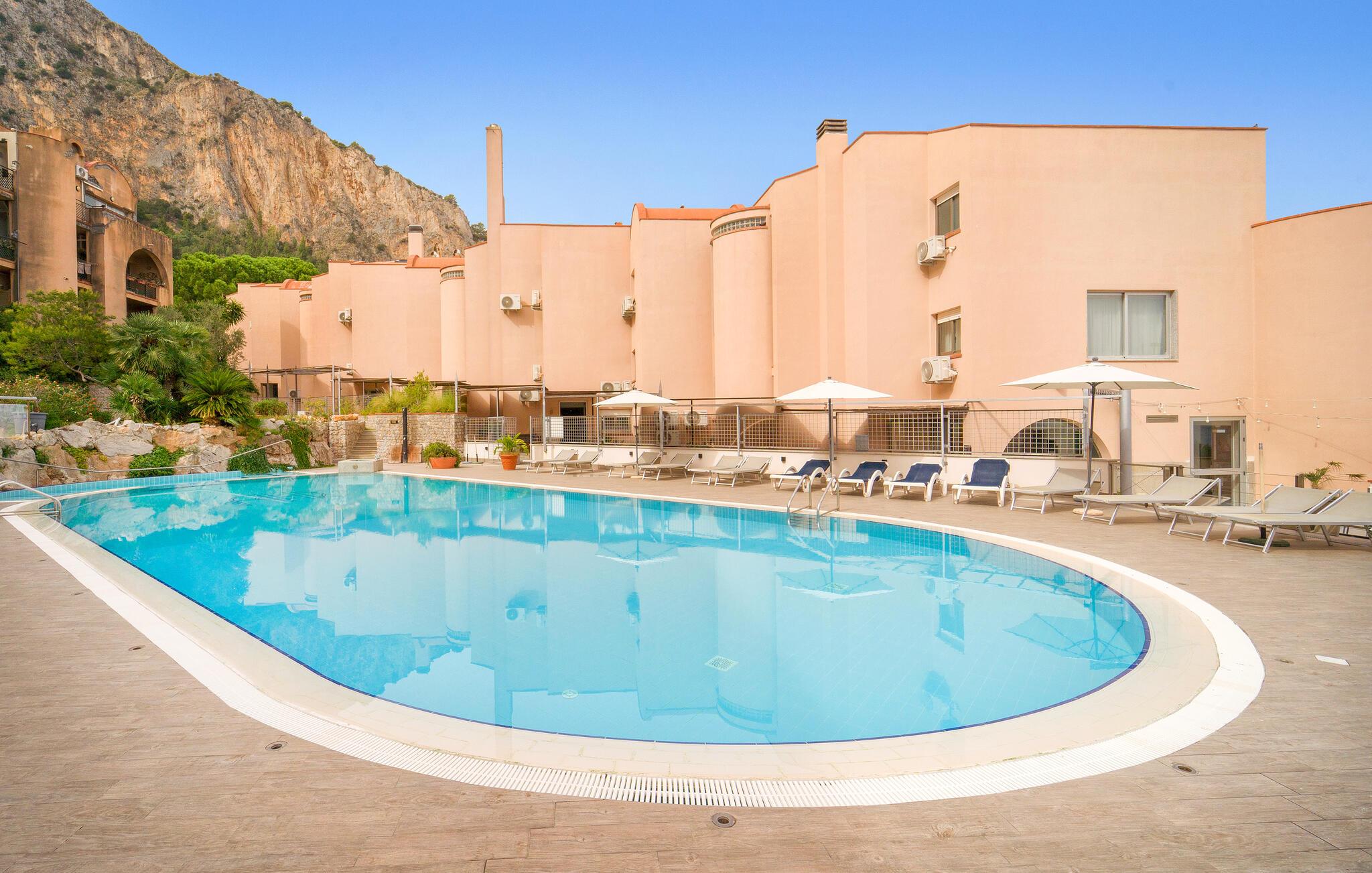 Velkommen til det nordvestlige Sicilien, der byder på en fantastisk kombination af kridhvide sandstrande, flot natur og charmerende kystbyer. Lejligheden er komfortabel og praktisk indrettet og er del af et større feriekompleks med fællespool og direkte adgang til en skøn sandstrand, hvor I uden tvivl kommer til at tilbringe en stor del af jeres ferie. Komplekset ligger i Addaura, en stille havneby, som kun ligger 9 km fra Siciliens hovedstad, Palermo - en oplagt destination til en dagsudflugt.