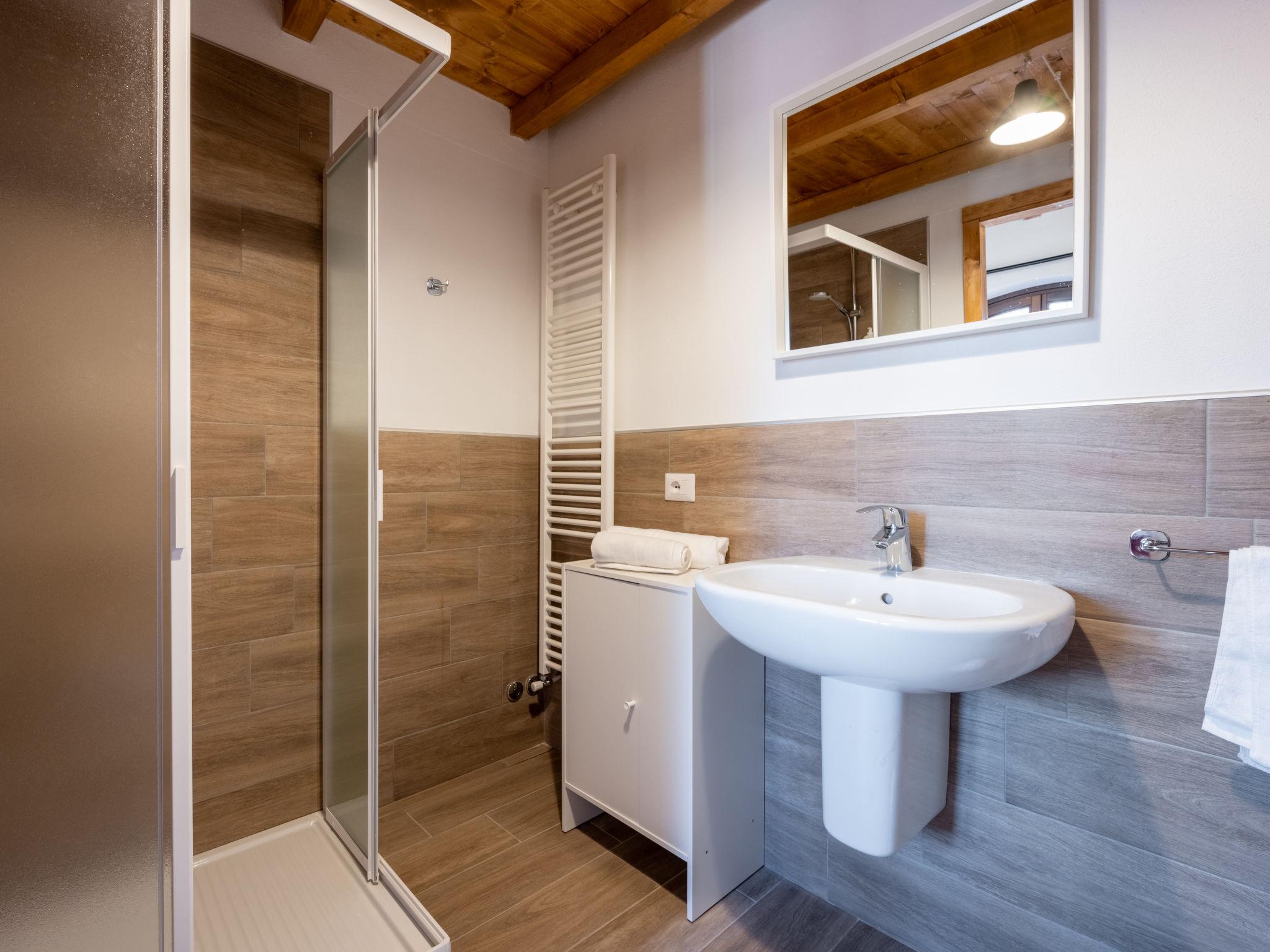 "Il Tiglio", 2-room apartment 60 m2 on 1st floor. Comfortable and modern furnishings: living/dining room with satellite TV. Open mezzanine with sloping ceilings, ceiling height 80 - 170 cm with 1 sleeping facility. 1 double bedroom. Kitchenette (dishwasher, 4 gas rings, microwave, electric coffee machine). Shower/bidet/WC. Heating. Heating available only from 15.10. to 15.04. Small patio. Terrace furniture, deck chairs (2). Facilities: iron, children's high chair, baby cot, hair dryer. Internet (WiFi, free). Please note: maximum 1 pet/ dog allowed. Smoke alarm, fire extinguisher. Instead of an enclosed bedroom, some sleeping areas are located in an open-plan area (gallery, alcove, etc.). IT004130C2L7XX9MPG