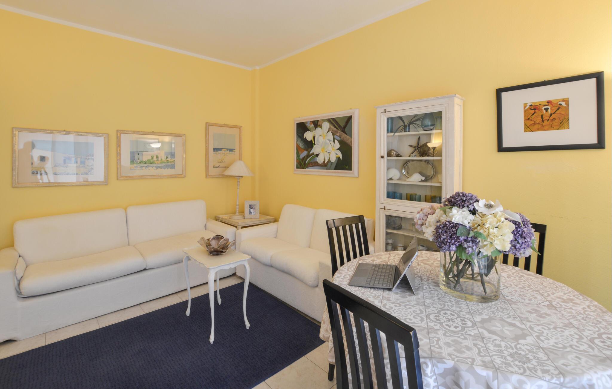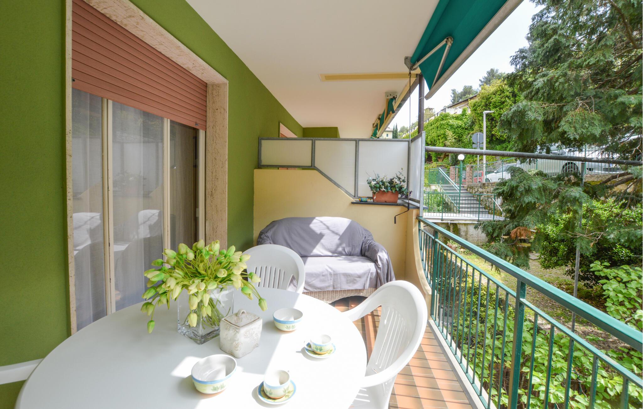 Fordyb jer i charmen ved denne ferielejlighed i Moneglia, som er en idyllisk oase på den italienske riviera. Den klassiske bolig byder på høj komfort og en elegant og farverig atmosfære. Lejligheden kombinerer smagfuld indretning med en afslappet atmosfære og er optimal til afslappende dage på kysten. Begynd dagene med morgenmad i køkkenet. Derfra kan I også træde direkte ud på altanen, så I kan nyde kaffen i solen.