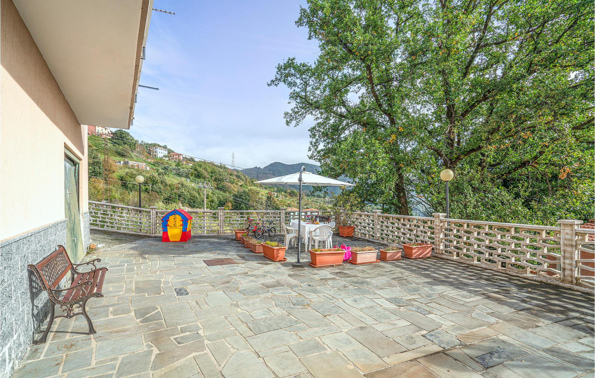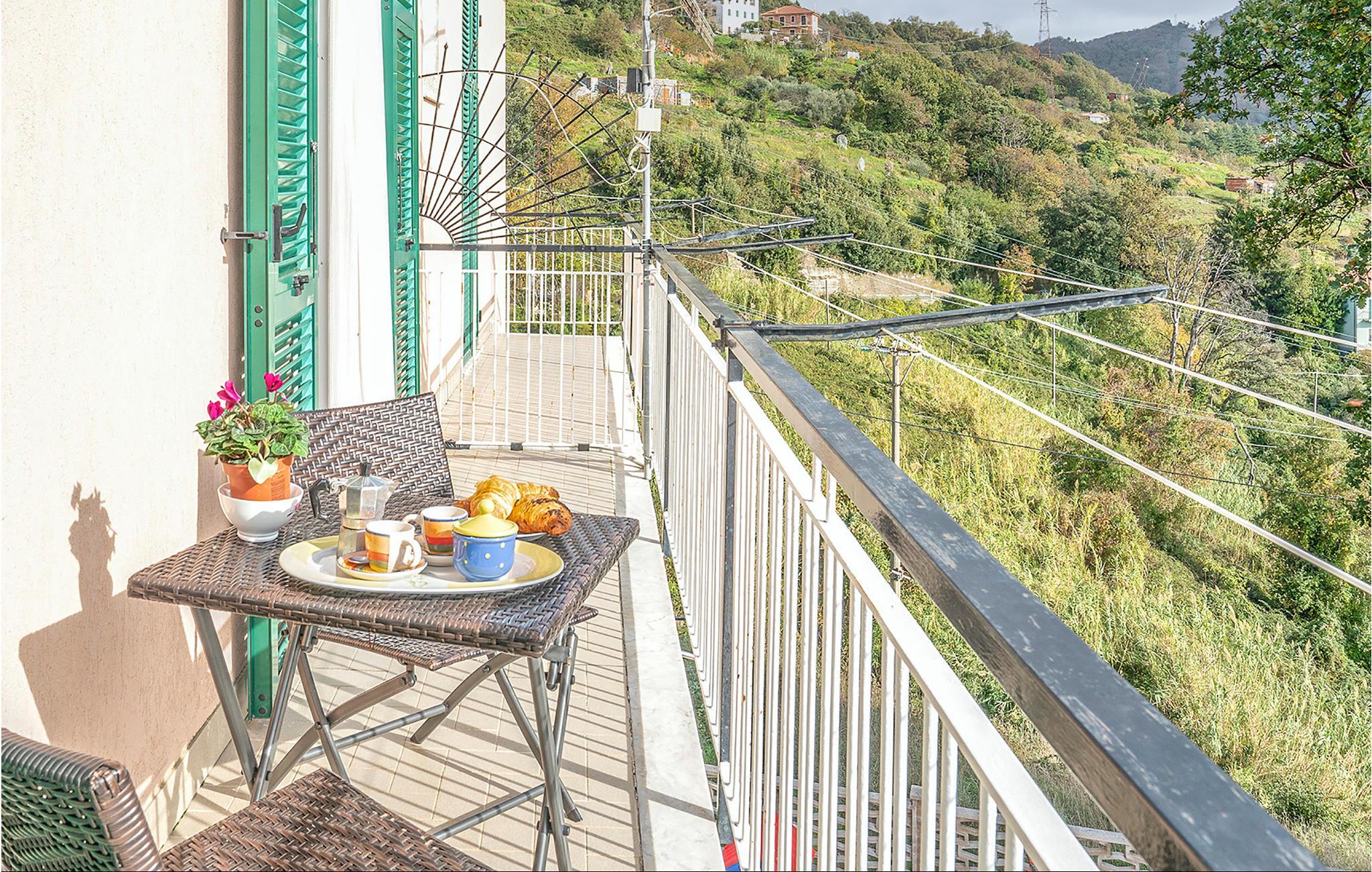 Den ligger på første sal i en ejendom med udsigt til Tigullio bugten. Fra altanen er der en smuk udsigt, og bag huset er der en terrasse beregnet til at at servere dagens måltider i det fri. Her er ligeledes legeredskaber til børn.