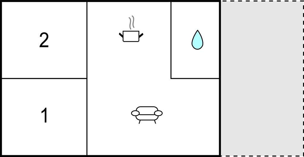Opholdsstue/køkken - 2 Sovepladser. (Sofa, madras eller lignende).