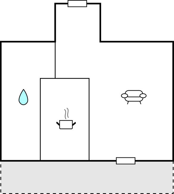 Køkkenet har v/k vand