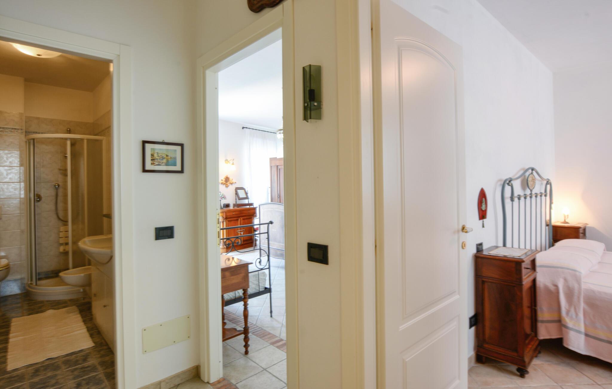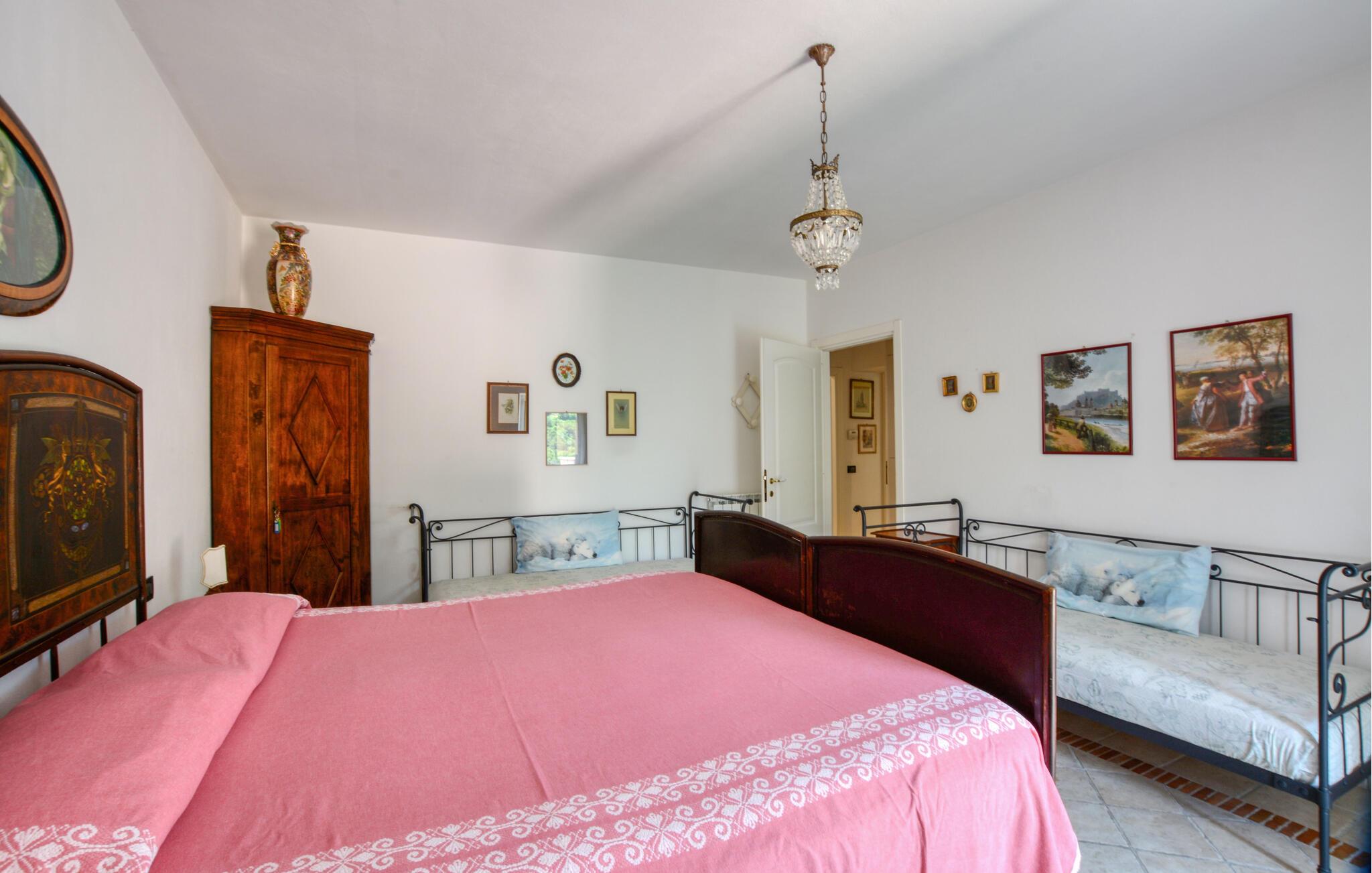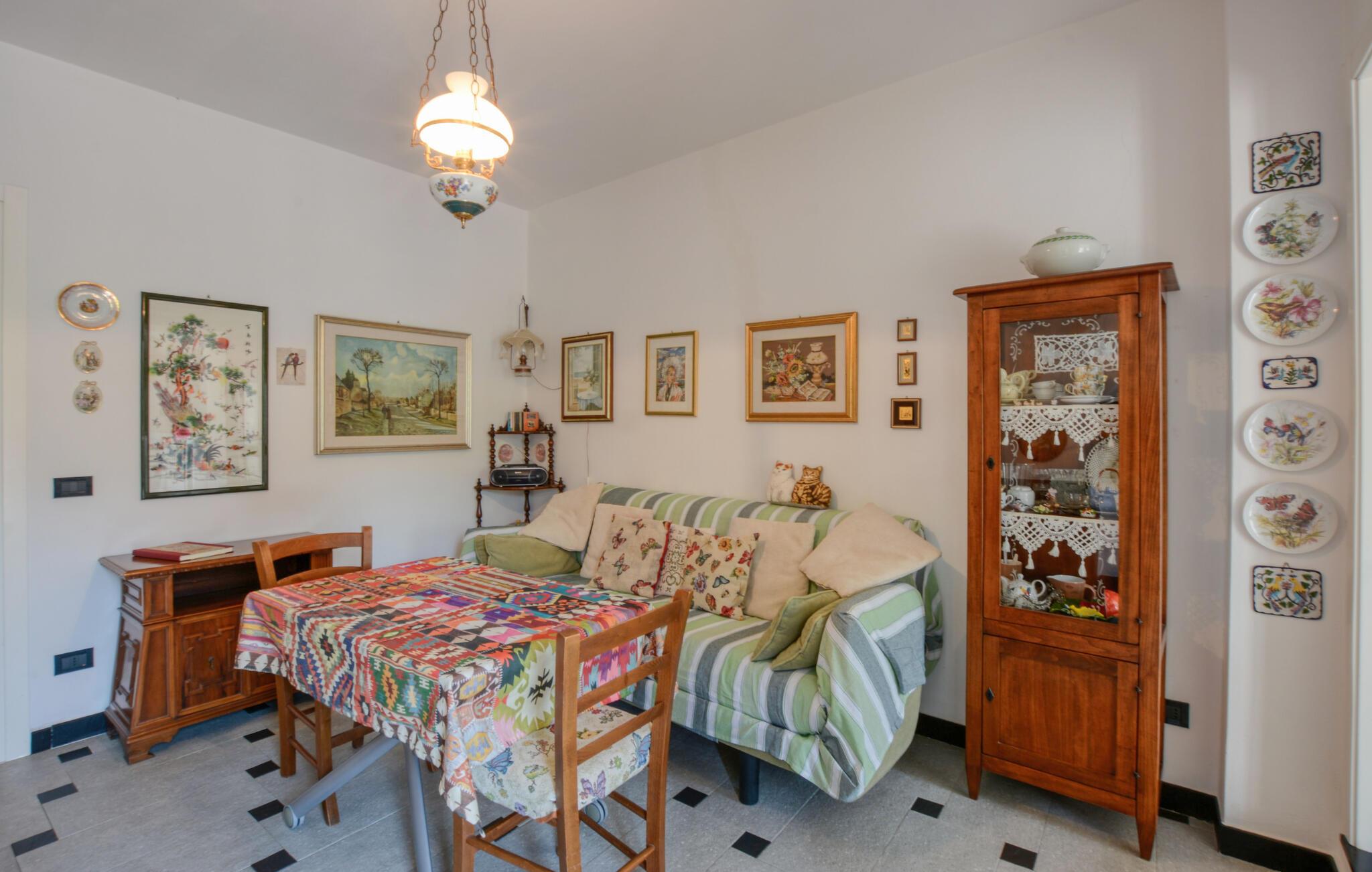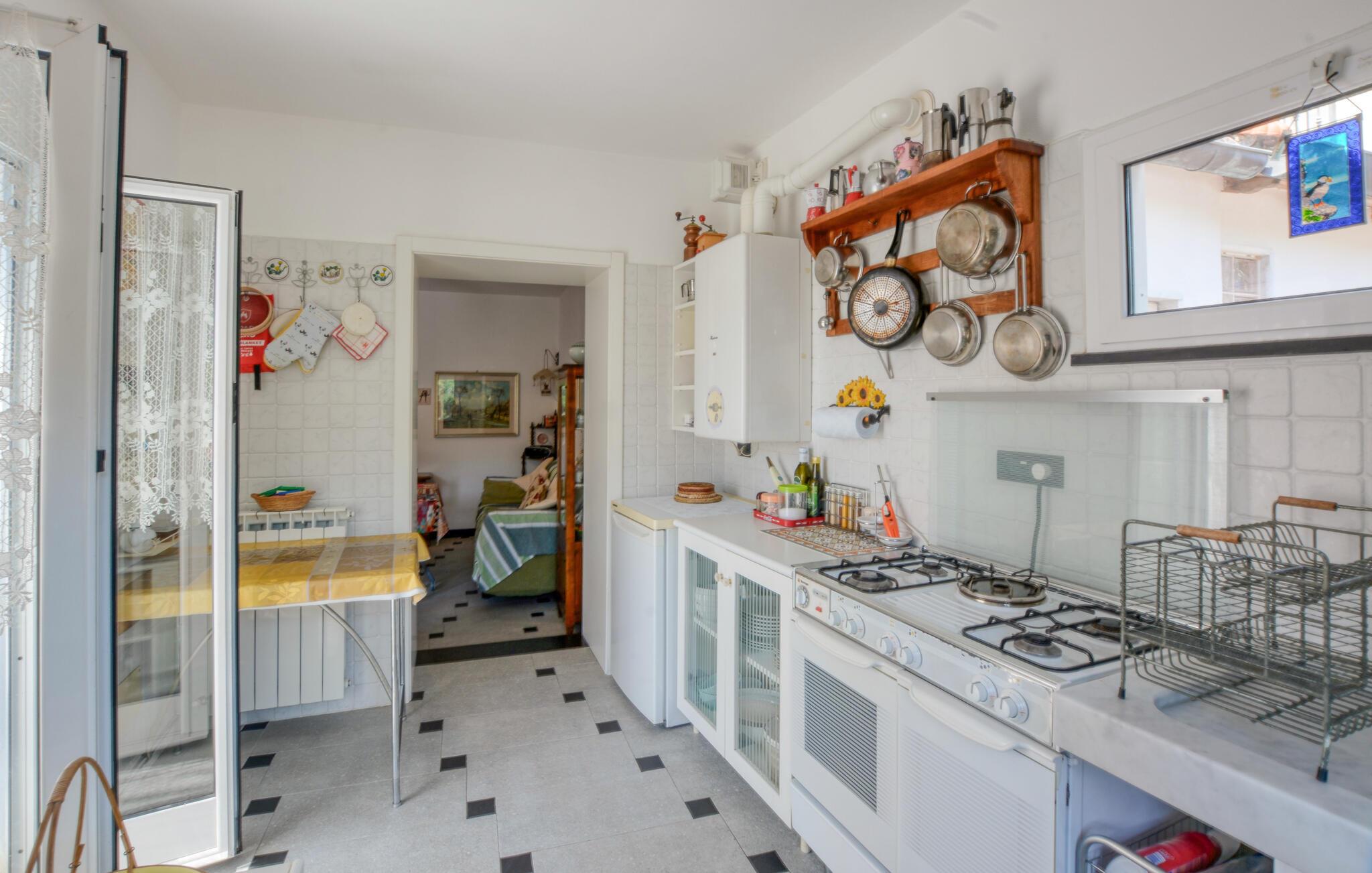 Lejligheden i San Saturnino kan nås til fods via en stentrappe, da den ligger i centrum af landsbyen. Denne særlige beliggenhed gør det til det optimale udgangspunkt for en afslappende ferie. Udforsk den nærliggende kystby Moneglia, gå gennem gyderne eller tilbring dagen ved havet. Badebugterne i området er kendt for deres rene vand og naturskønhed.