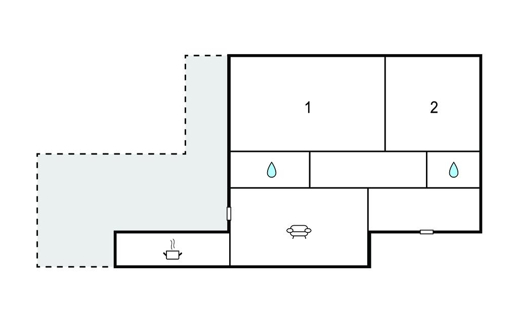 Badeværelse 3m2 (nr. 1) - WC. Varmt og koldt vand. Bruser