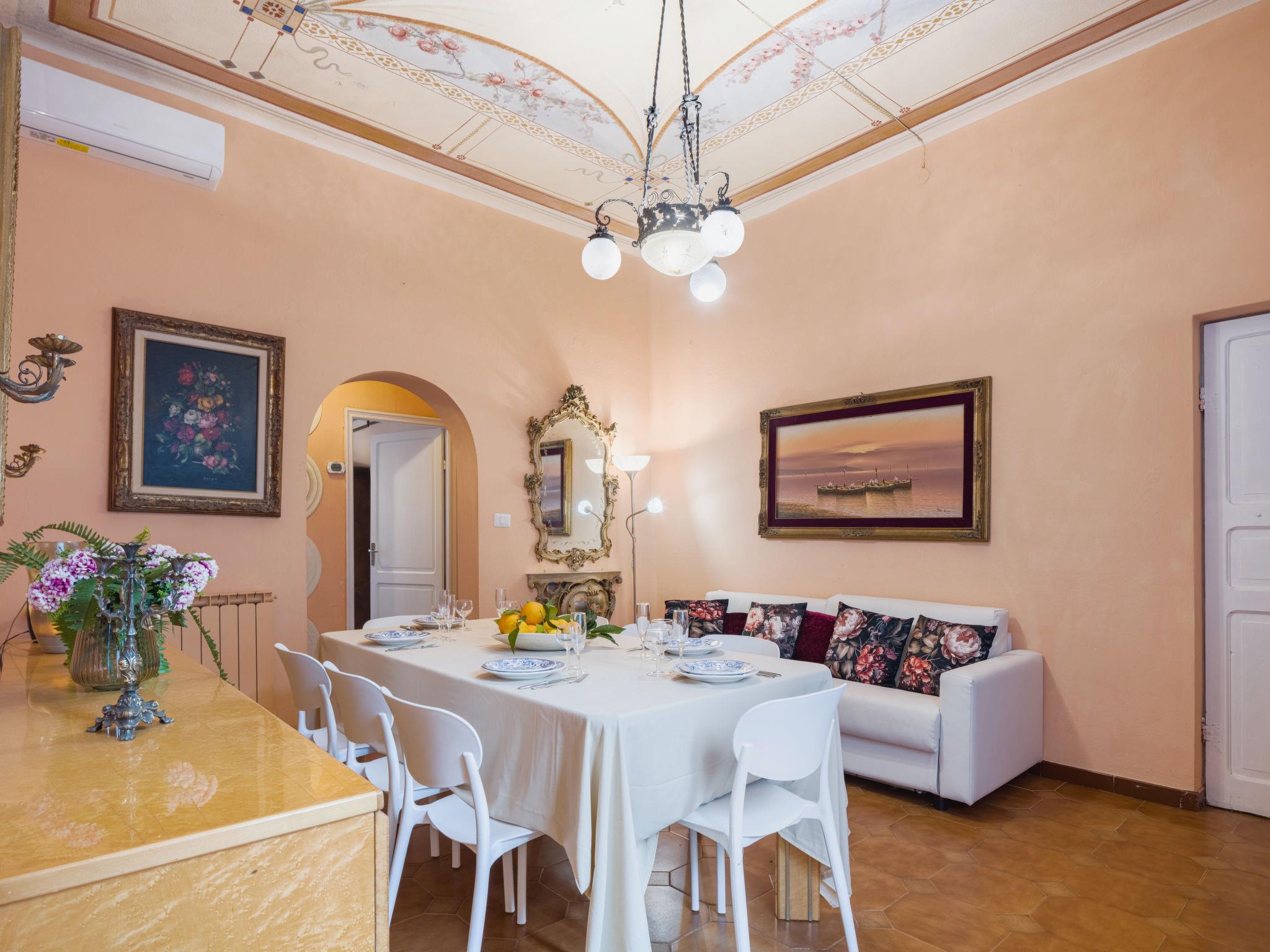Beautiful, historical 2-family house "Elsa", 2 storeys. In the centre of Moneglia, 400 m from the sea. For shared use: garden 300 m2 (fenced) with lawn and trees. Garden furniture, public parking 200 m on the road. Supermarket 400 m, restaurant, bar, bakery, bus stop 300 m, railway station "Moneglia" 500 m, shingle beach 400 m. Please note: Loading and unloading of baggage is possible at the holiday house. Railway line 60 m from the property. Neighbourhood highly sensitive to noise. Quietness and good behaviour expected.