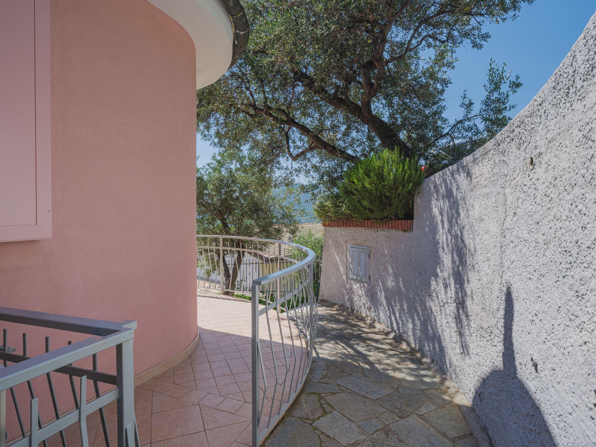Small apartment house, renovated in 2023. Above Moneglia, in the hamlet Lemeglio, 1.5 km from the centre, in a quiet, sunny position on a slope, 1.8 km from the sea, in a cul-de-sac. Stepped path (10 steps) to the house. Supermarket 1.5 km, restaurant 200 m, bus stop 500 m, railway station "Moneglia" 2 km, shingle beach 1.8 km. Please note: car recommended.