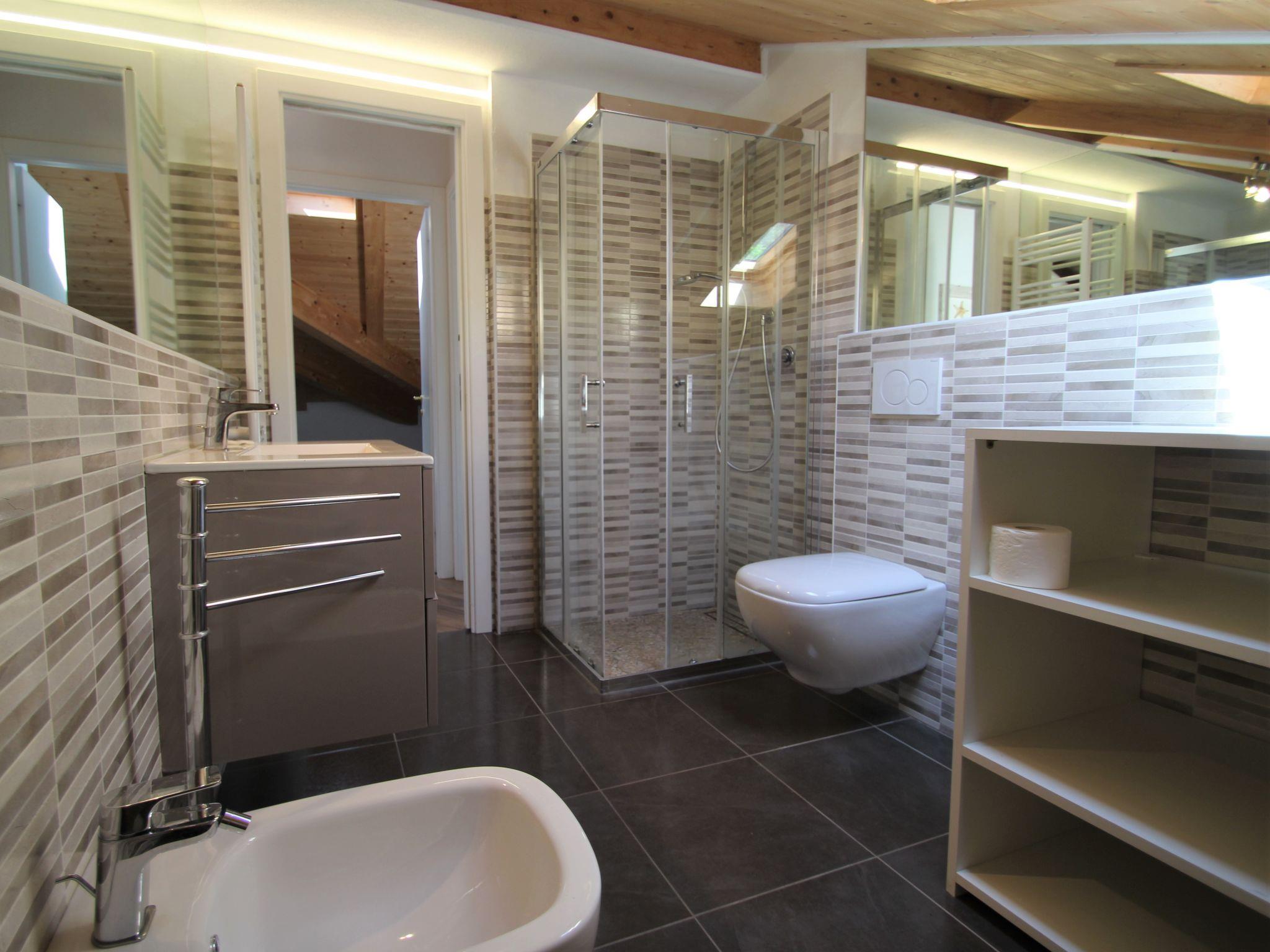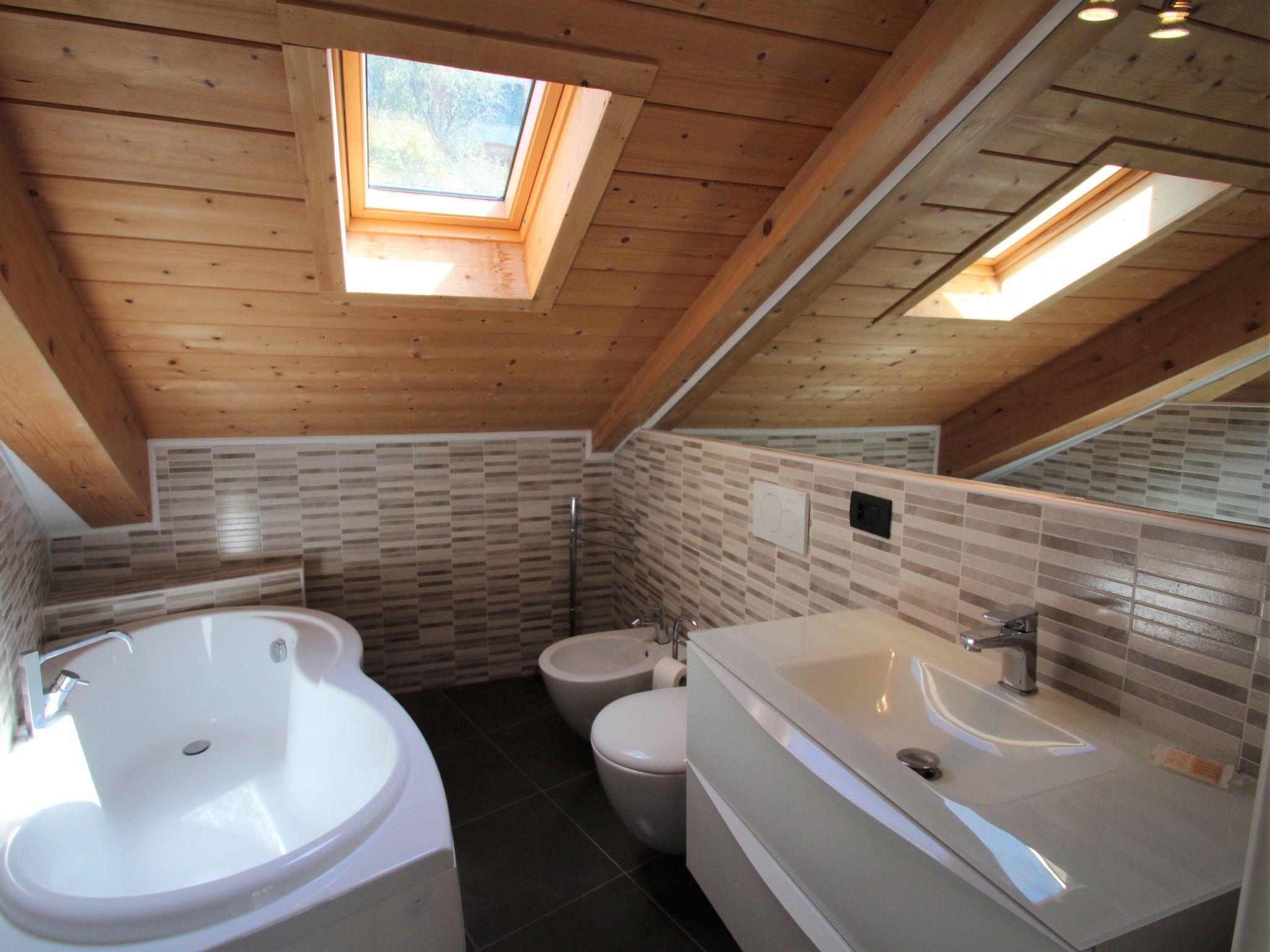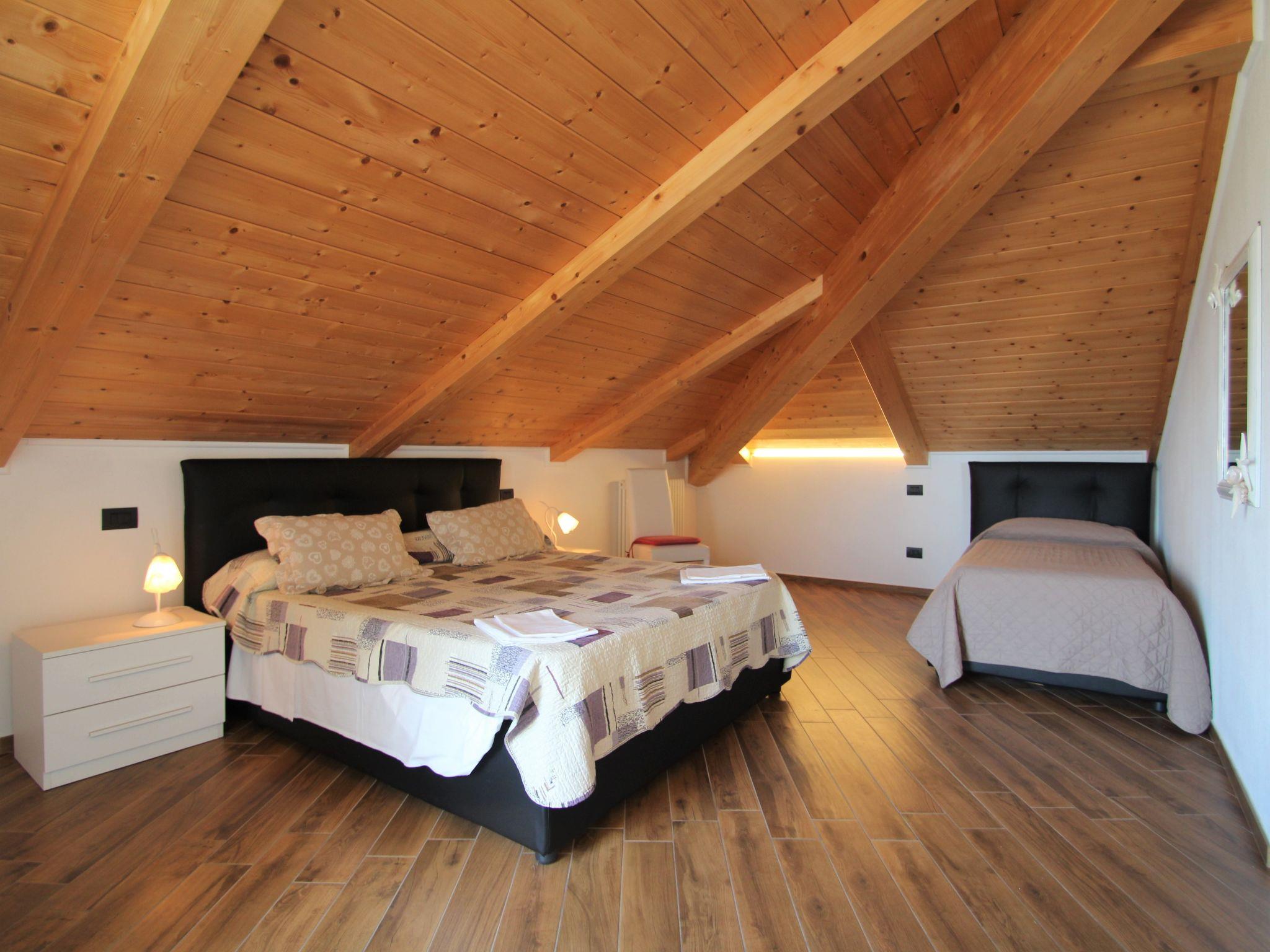 3-room apartment 116 m2, on the top floor. Modern furnishings: large living/dining room with sloping ceilings with dining table and satellite TV. Exit to the terrace. 1 room with sloping ceilings with 1 bed and 1 double bed. 1 room with sloping ceilings with 1 bed and 1 double bed. Exit to the balcony. Kitchenette (4 hot plates, oven, dishwasher, microwave, freezer). Bath/bidet/WC, shower/bidet/WC. Gas heating, air-conditioning. Heating available only from 01.10. to 30.04. Balcony, terrace. Terrace furniture. Panoramic view of the sea and the valley. Facilities: washing machine. Internet (WiFi, free). Please note: non-smokers only. Maximum 1 pet/ dog allowed. Private entrance. IT010037B4B2BFS87C