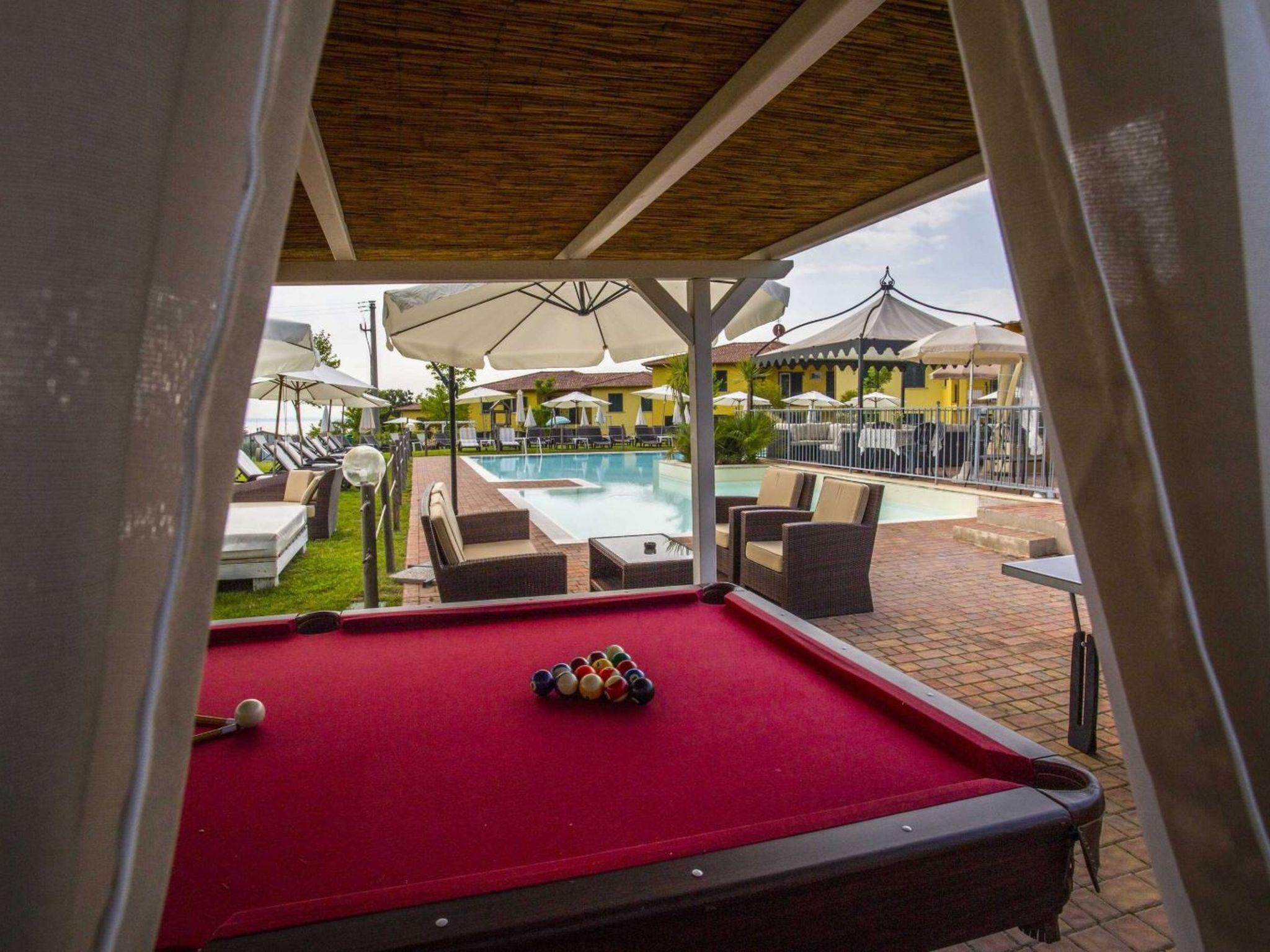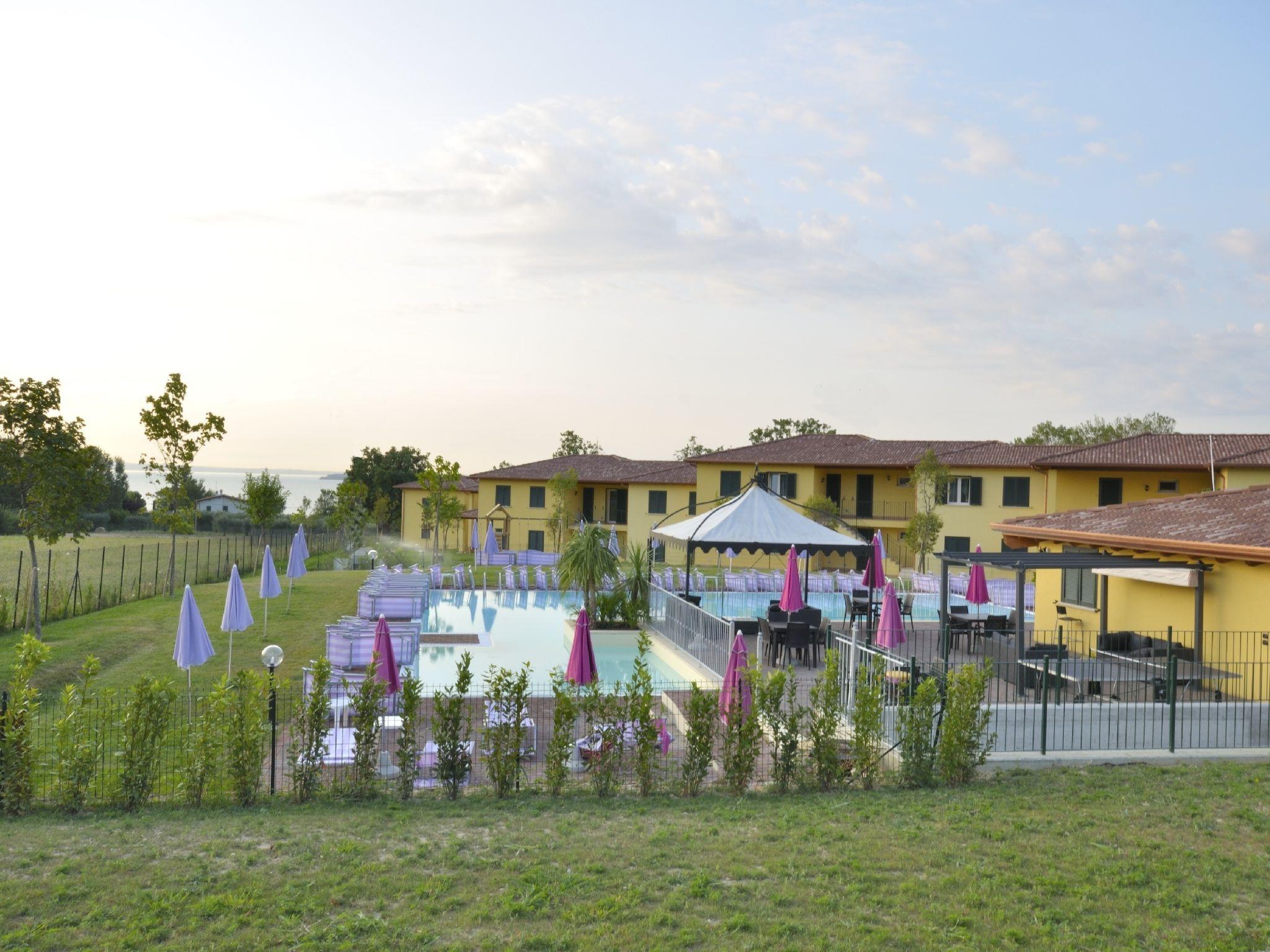 Residence "Karina", 2 storeys, built in 2012, surrounded by meadows and fields. 39 apartments in the residence. Outside the resort, 1.5 km from the centre of Moniga del Garda, in a sunny position, 1 km from the lake, 1 km from the beach, in the countryside. For shared use: natural state property, swimming pool (9 x 18 m, depth 120 - 134 cm, seasonal availability: 01.Apr. - 01.Nov. pool opening hours: 08:30-22:00). WC in the pool area, children's pool, outdoor shower, hot tub. In the complex: reception, bar, lounge, WiFi, fitness room, table tennis, billiard table, playroom, table football, shopping facilities, washing machine, tumble dryer (for shared use, extra). Bread roll service and breakfast on request (extra). Parking. Bus stop 700 m.