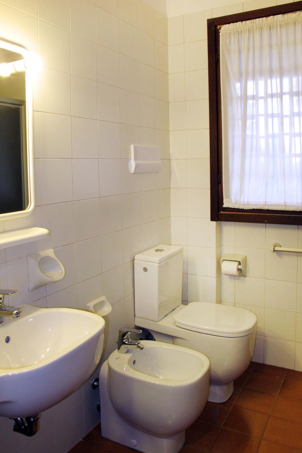 2-room apartment 42 m2, on the ground floor. Comfortable furnishings: living/sleeping room with 1 double sofabed, dining table and satellite TV. Exit to the terrace. 1 double bedroom. Exit to the terrace. Open kitchen (4 gas rings, toaster, kettle, electric coffee machine). Shower/bidet/WC. Air-conditioning, forced-air heating. Terrace roofed. Terrace furniture, deck chairs (2). Facilities: safe. Parking (fenced 1 car). Please note: non-smokers only. Maximum 1 small pet/ dog allowed. Private entrance. IT017109B4CMWYM2DZ