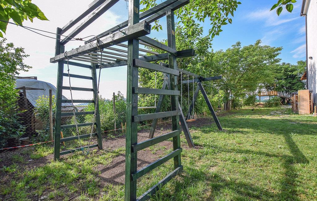 Gå på opdagelse i lejligheden, som er fordelt på to plan og byder på et åbent opholdsrumsdesign med to hemser. Saml jer i det store opholdsrum og nyd indkvartering med enkle bekvemmeligheder. Spil kort sammen eller slap af i sofaen. Haven indbyder også til at tilbringe meget tid udendørs. En klatreparkour og gynger lover sjove og milde sommeraftener i haven.